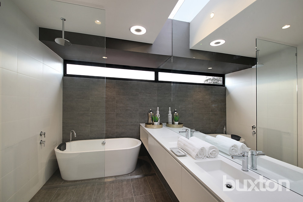 With a spectacular top-floor master domain comprising window-walled bedroom, 5 Star 9sqm dressing-room and in-floor heated ensuite, the home features generous robe-fitted double secondary bedrooms, a vast dual vanity principal bathroom and a clever ground-floor study area with "floating" desk.