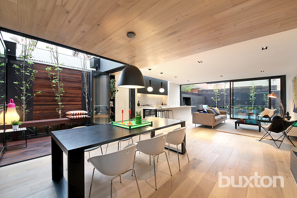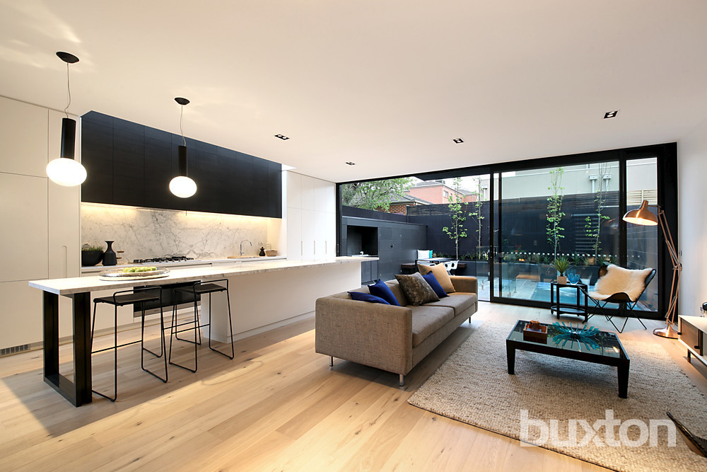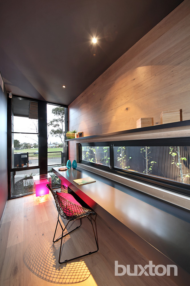 Cutting-edge design comes to the edge of the park, in the latest collaboration from KG Architecture & Castro-Cruz Developments. Facing north over Boss James Reserve, this visionary three bedroom plus study, 2.5 bathroom makes a striking statement with auto-gated auto-garaging concealed within a slatted timber façade and an apartment sized master-suite on high beyond an invisibly glass-edged balcony.