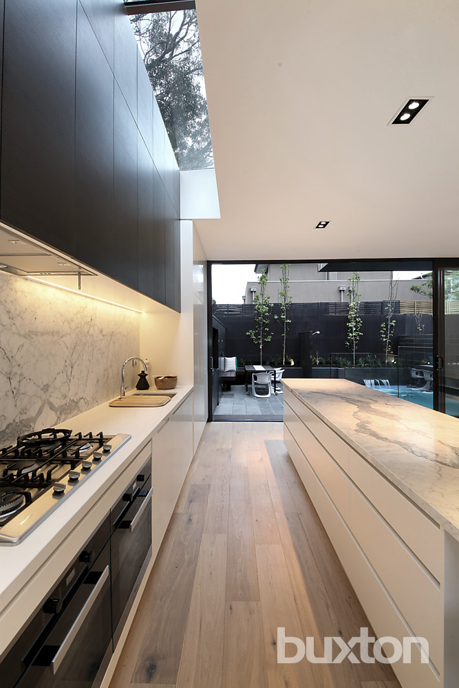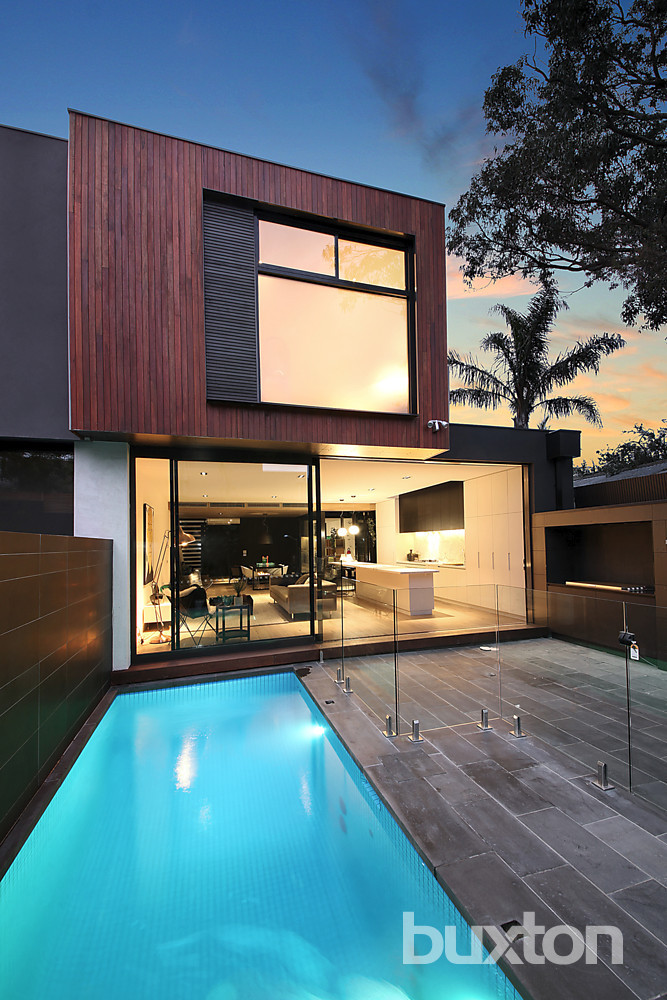 Practically perfect with a streamlined BBQ kitchen beside the glass-fenced pool and commercial quality double-glazed windows and skylights throughout, the home has individual linear slot bulkhead climate control for every room, video intercom entry upstairs and down, and 2500 water-storage and solar hot-water enhancing a 7 Star Energy rating. Sunlit, Parkview & so eye-catching, you haven't see town-residence living like this!