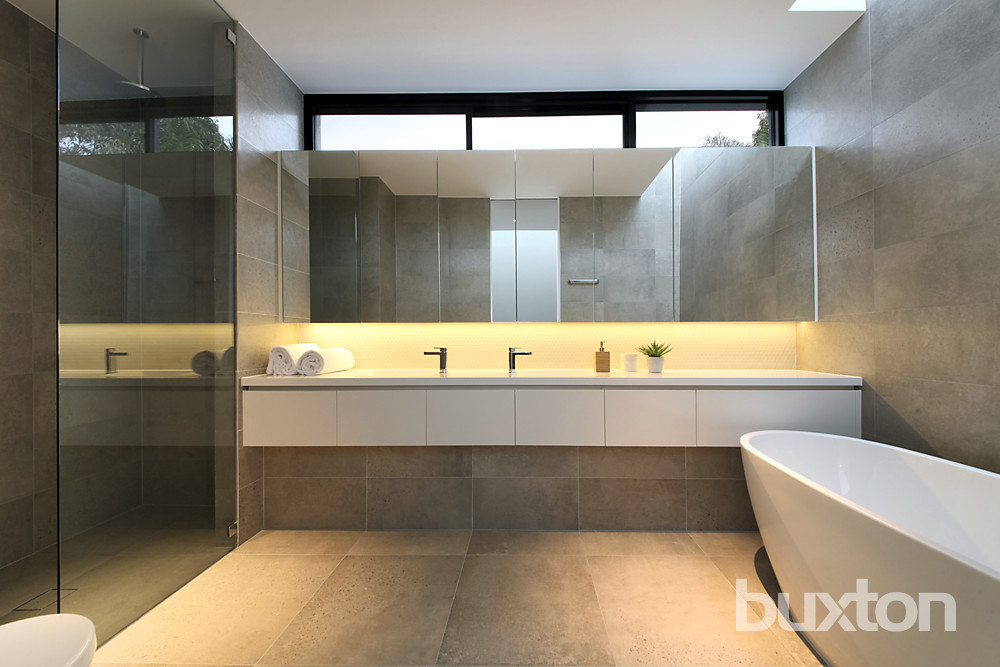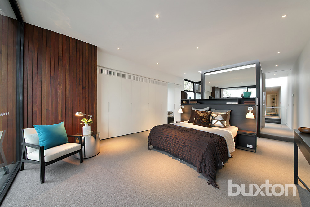 Detailed to an uncompromising level with a Callacatta marble and Miele kitchen (featuring double ovens and integrated fridge) and fully-tiled Rogerseller-fitted bathrooms, the home is a showcase of bespoke finishes - from the Spotted Gum panelling that flows to inside out in the master suite, to the sliding stackers opening principal living to a bluestone-paved courtyard, to the water-features flowing into the solar-heated fully-tiled pool. High-end Artemide lighting are highlights in most rooms, Smoked American Oak from Royal Oak appears on benchtops and floors, and bespoke cabinetry includes a massive bank of soft-close drawers for the mirror-walled master dressing area.