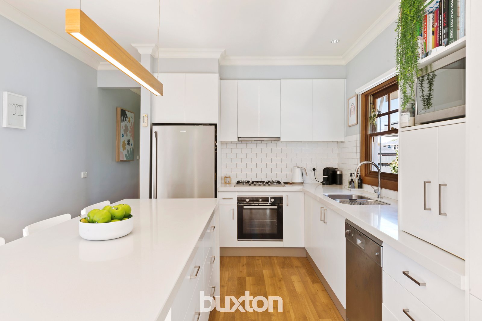 Blending timeless style with transformed interiors, this inviting 3-bedroom home goes beyond well-groomed front gardens with a gas-log fire-warmed formal lounge, spacious separate dining and a sun-catching breakfast bar beside the high-end kitchen.