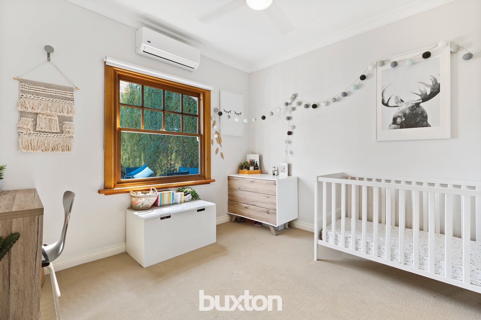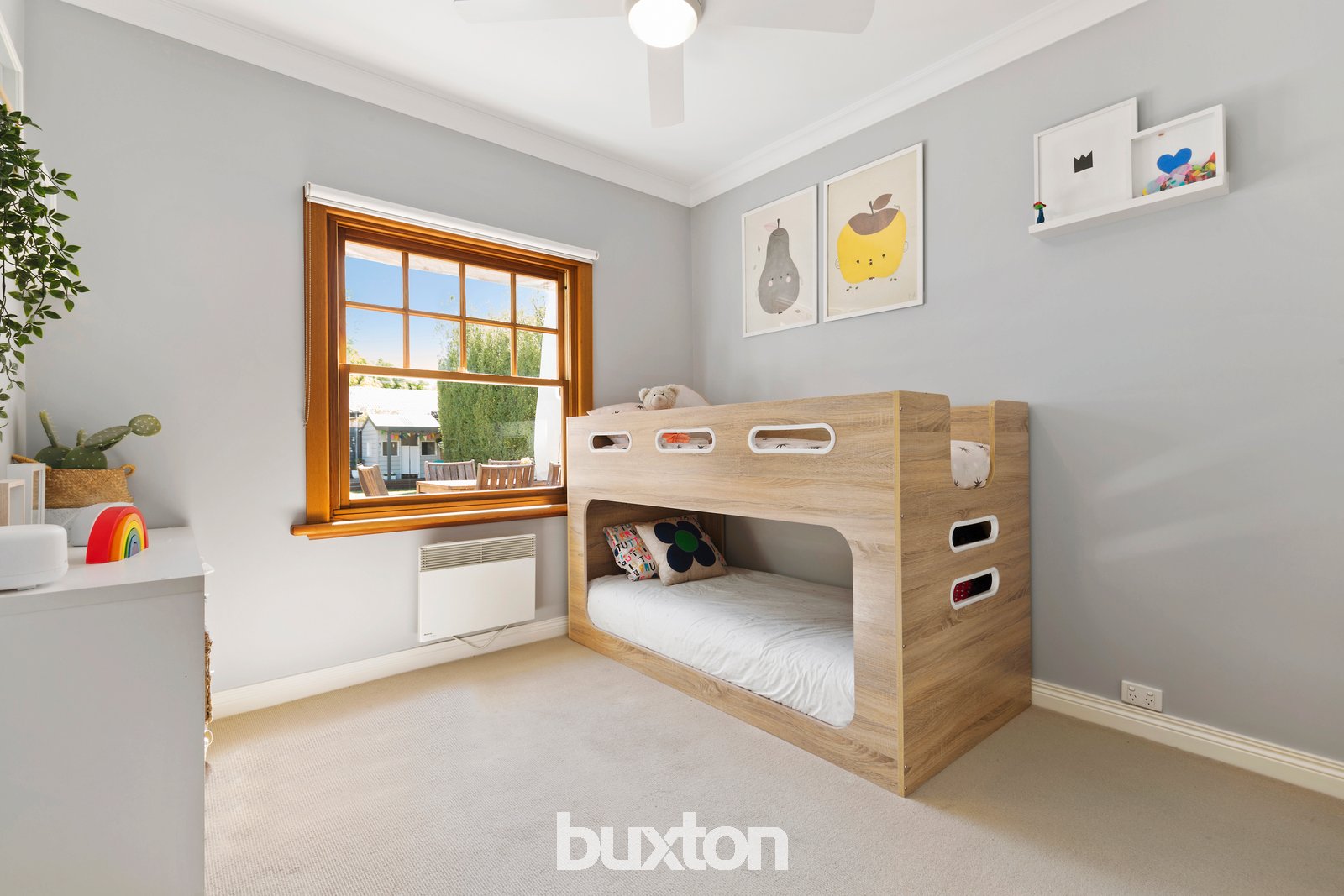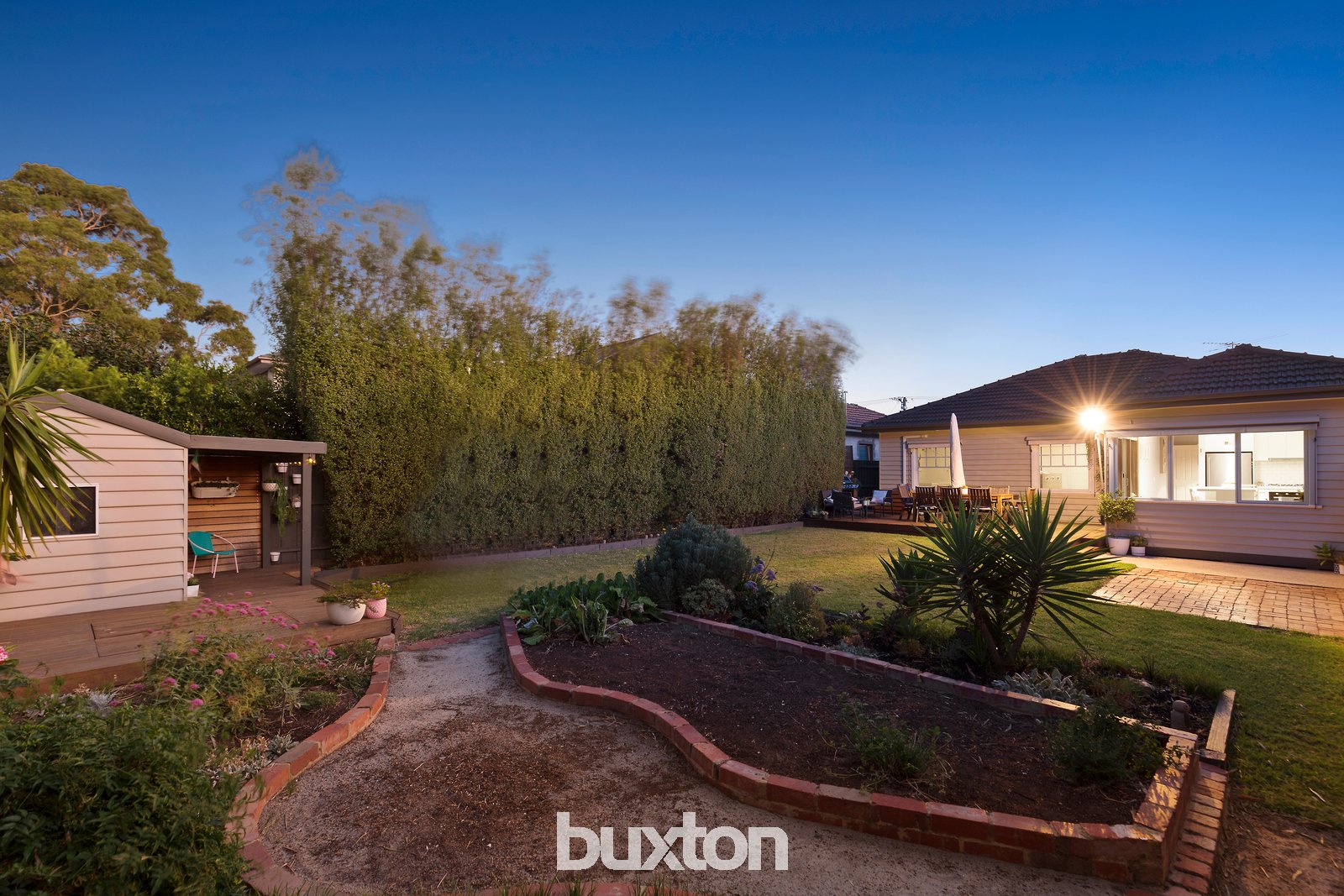 Set in sizeable (6050sqft/562sqm) approx. grounds, there’s a spotted gum deck for parents to entertain, a sunken sandpit and decking around a kid’s cubby, a veggie patch to indulge a green thumb and a secure garage beyond a long driveway.
