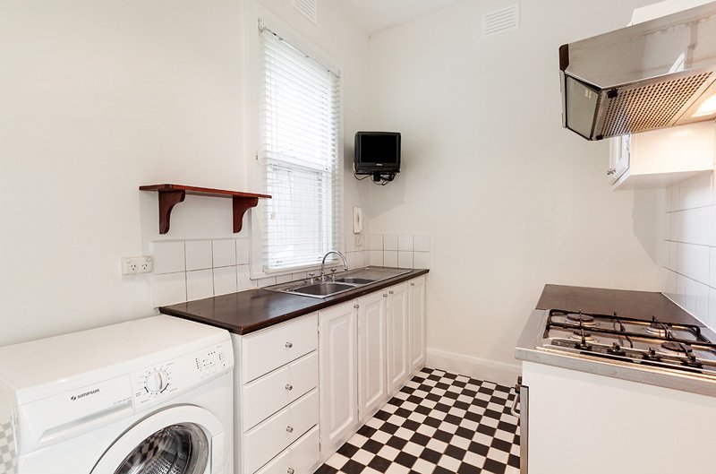 Set at the rear of the exclusive 'Kingsclere' development through a secure and quiet courtyard, this one bedroom unit will not last long! Large bedroom with built in robes; spacious living room with polished floorboards, electric wall heater and open fire place; kitchen with s/s appliances and gas cooktop; bathroom with shower over bath; and your own private courtyard! Rear access to lane way behind with permit parking. Located within walking distance to shops, cafes, restaurants and transport.