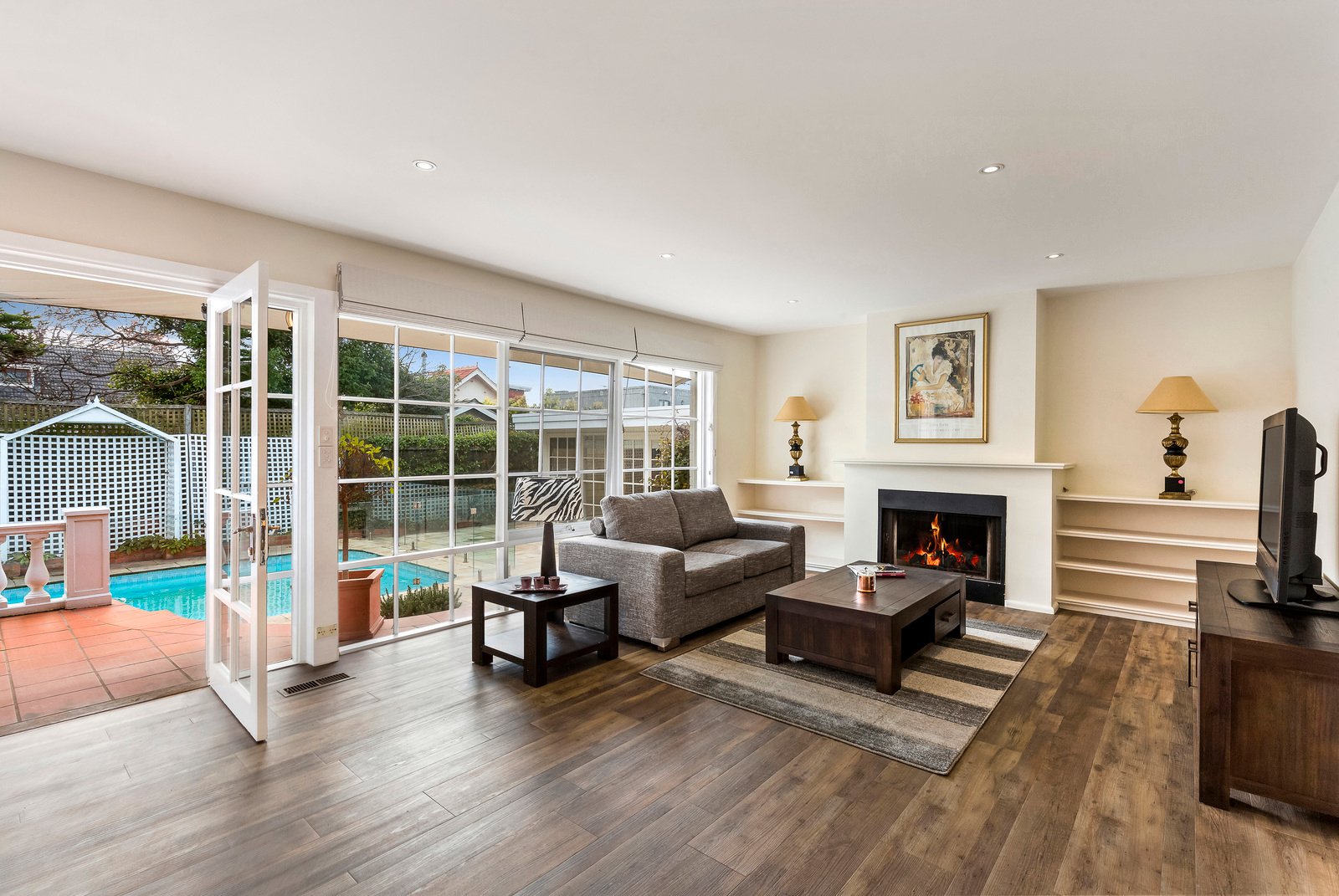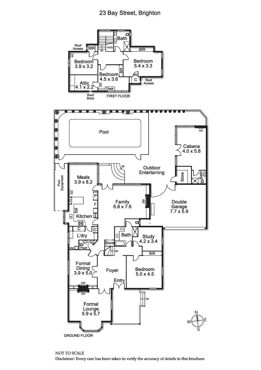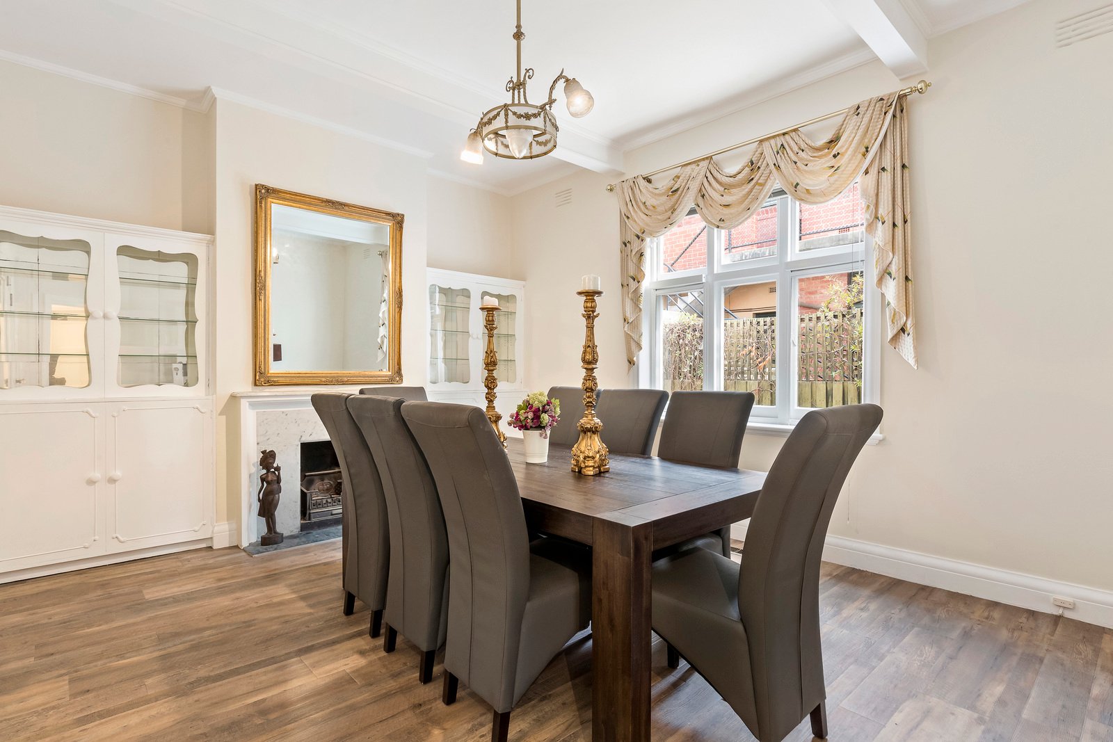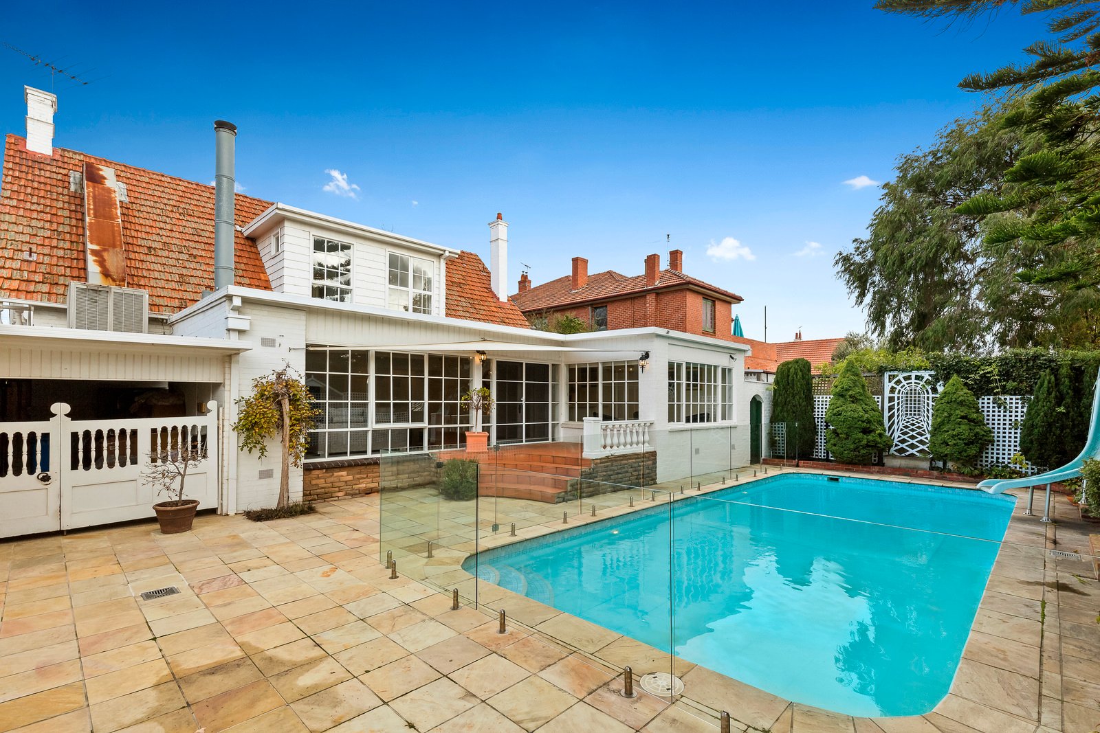 This solid-brick residence is situated on the prestigious Golden Mile and is graced with a sense of old-world Hollywood glamour. The 1920s family home offers grandly scaled entertaining and living zones including reception hall, an elegant lounge, formal dining room, and modern kitchen with Miele stainless steel appliances, family room overlooking rear, fenced in-ground pool, casual meals, four bedrooms, study, two bathrooms, powder room and a separate poolside cabana with third bathroom. Features decorative ceilings, chandeliers, ducted heating, cooling, European gardens and triple lock up garage. What a fine opportunity to live among Brighton’s elite just footsteps away from the beach and within such close proximity to highly regarded schools, North and Middle Brighton Stations and the culinary delights, supermarkets, shops, designer boutiques and cinema complexes in Bay and Church Streets.