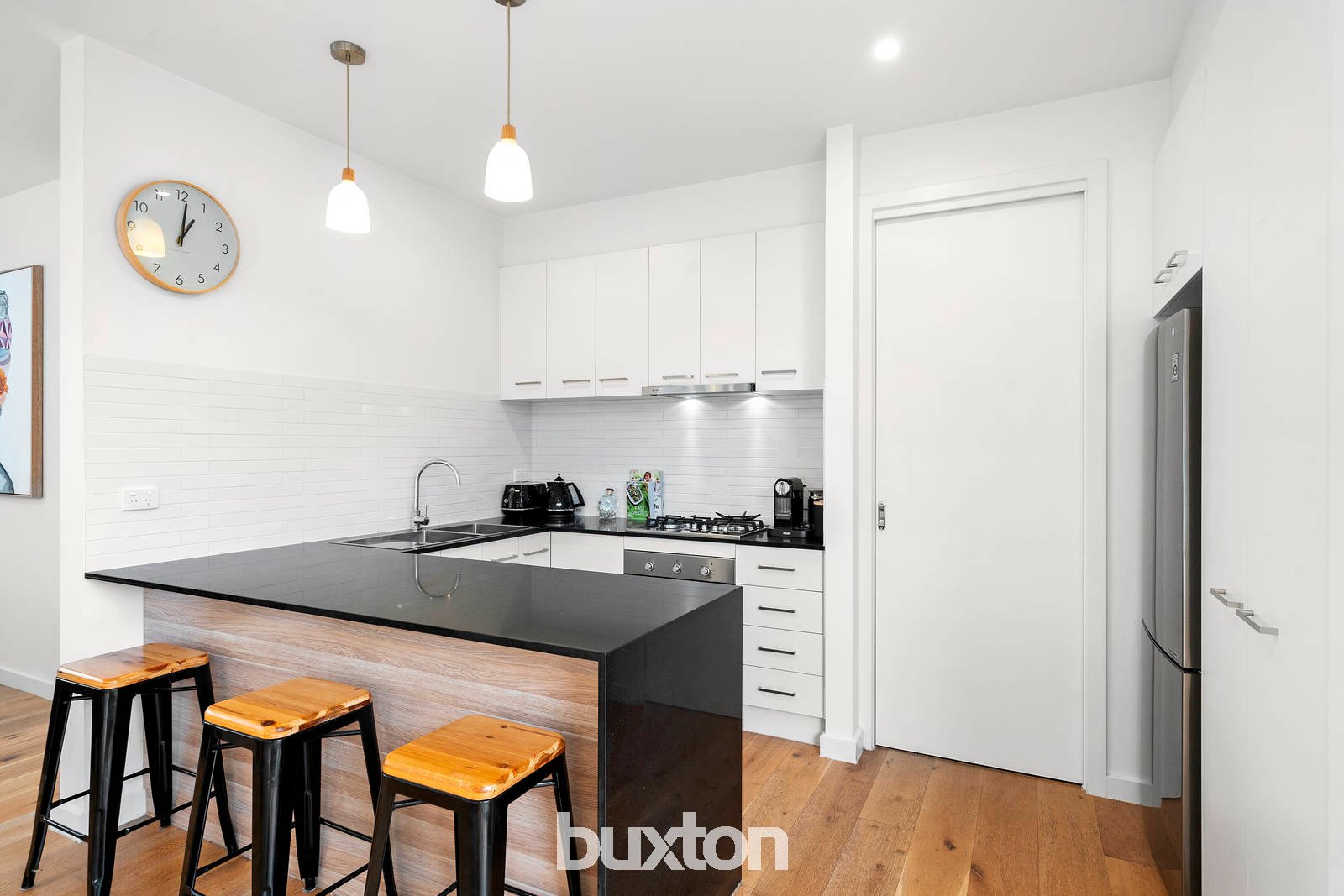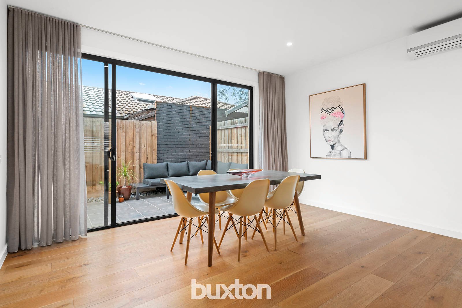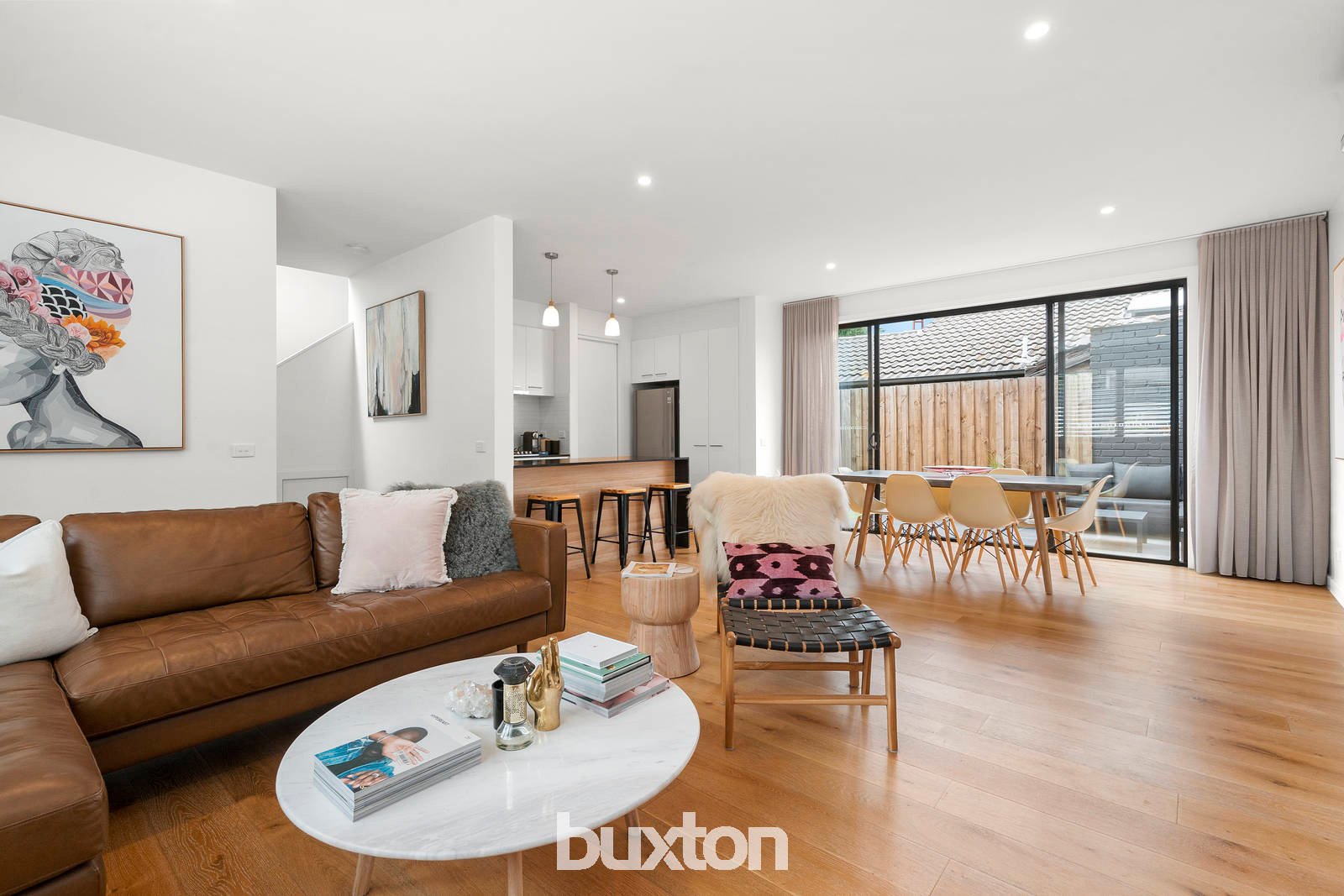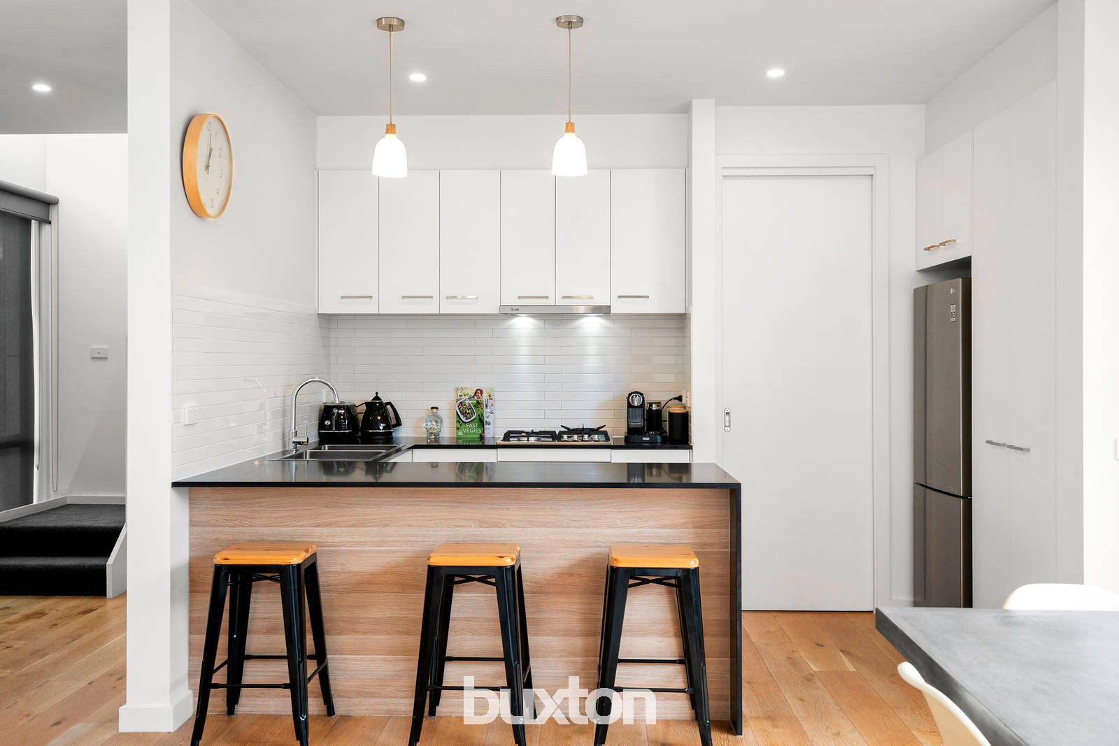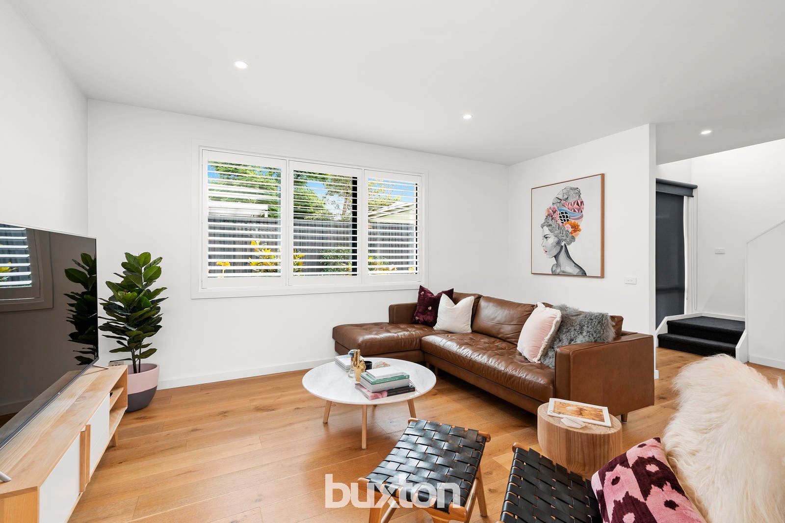 Low-maintenance living enhanced by a cool coastal landscape ideal for a lock and leave lifestyle or readily rentable investment, this sun-filled two-storey design showcases virtual dual suite accommodation with a fully-tiled ensuite beyond the master WIR and a sleek principle bathroom zoned beside the second bedroom, open plan living/dining flowing out to entertainers courtyard, state-of-the-art interior design with a full set of Ilve appliances for the streamlined kitchen, bespoke cabinetry for the bathrooms and glossy stone benchtops. Other features include airy limed Oak floors and reverse-cycle air-conditioning upstairs and down, a 2000L tank, and auto-garage under the roofline for peace of mind, this exciting home has it all – including a lifestyle location with a choice of shopping precinct and station in reach and the Mentone schools in Zone! For more information about this beachside property contact Wesley Belt at Buxton Mentone on 0418 310 753