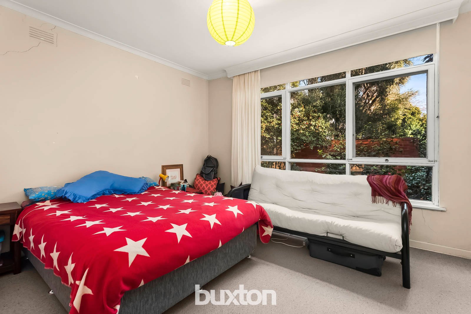 Serenely set to the rear of a block of just seven, the original 1960s interiors of this ground-floor apartment offer oversized proportions, a functional floorplan and excellent foundations for future enhancement. Solid-brick surrounds and 93sqm (approx) of space set the scene for the generous central living/dining room (Rinnai gas heater) and separate gas kitchen/meals, while both privately zoned bedrooms have built-in robes the master with a balcony enjoying a peaceful leafy backdrop.