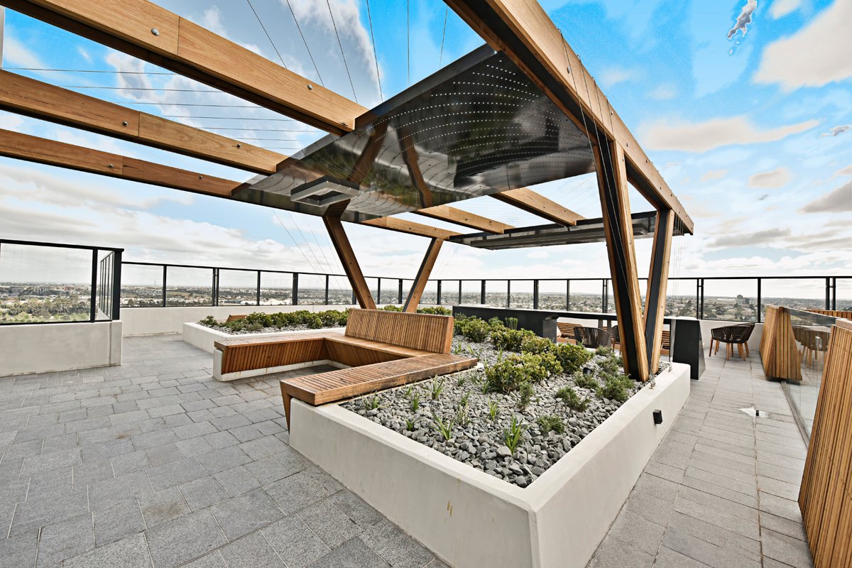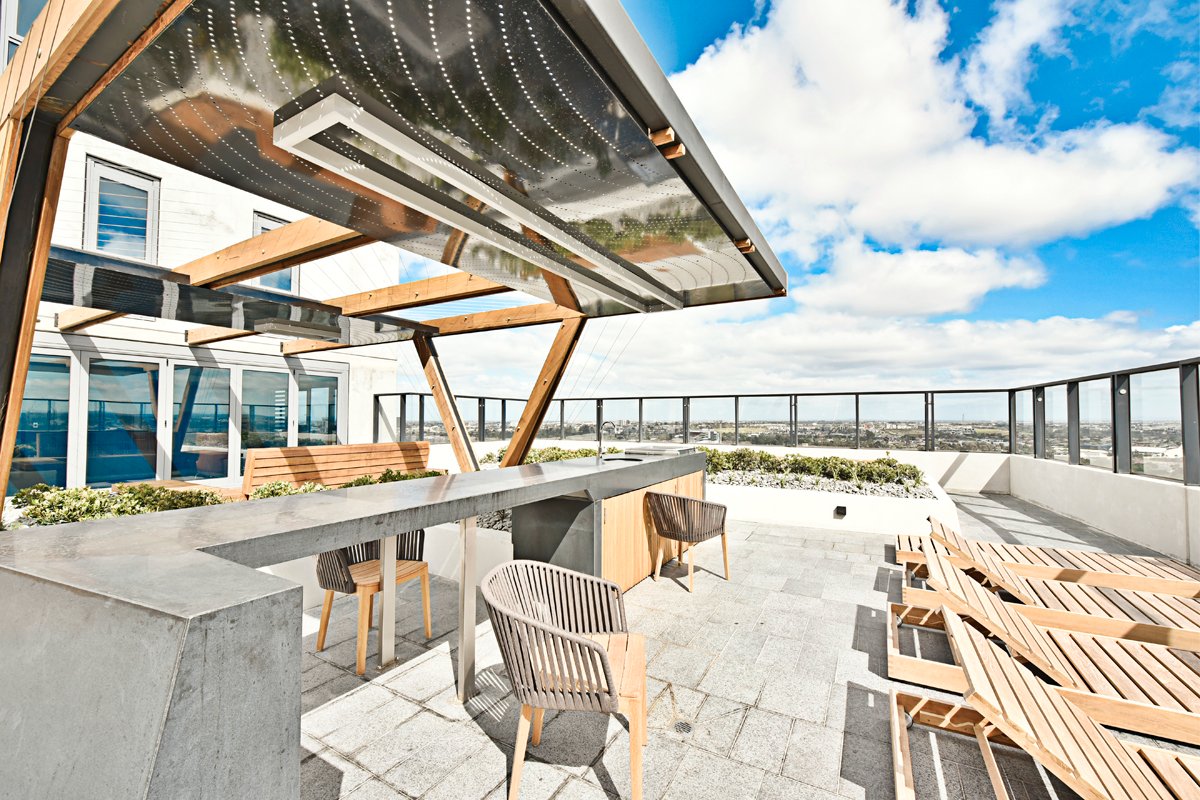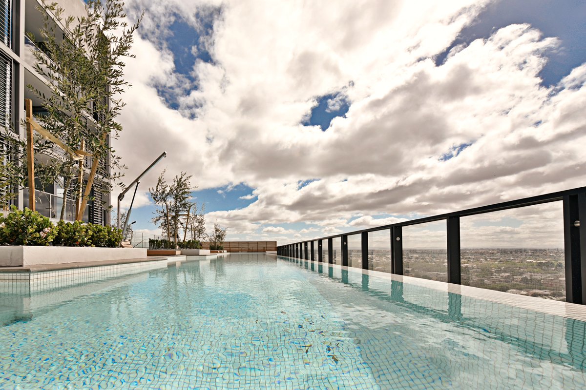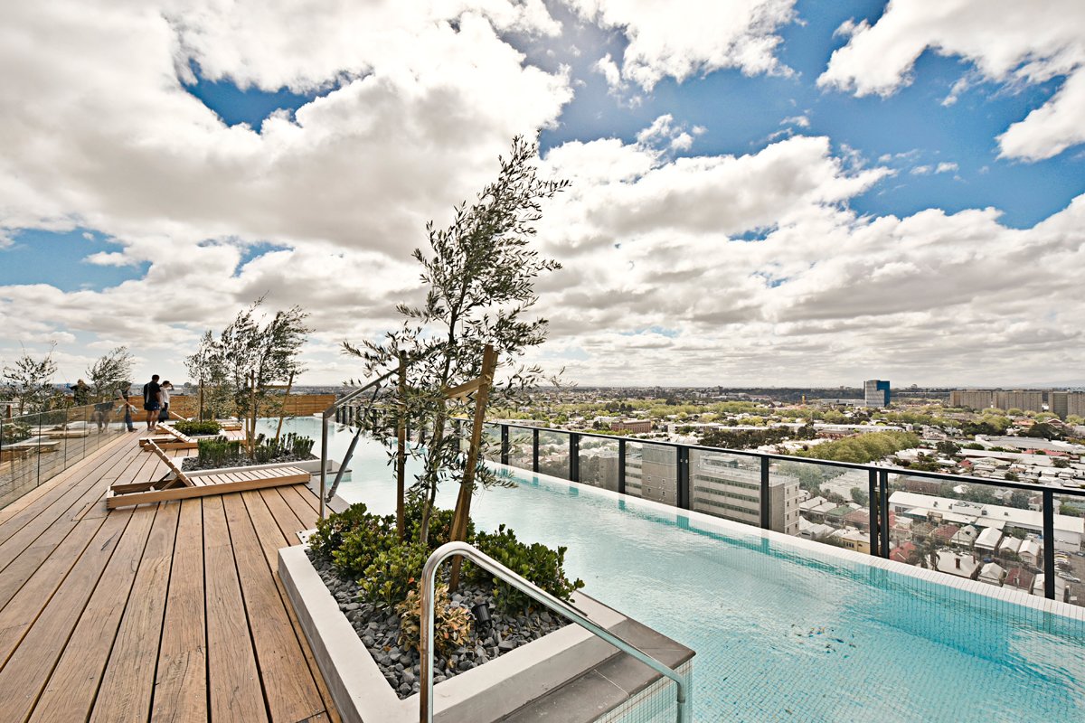 Residents of ONLY will experience a stunning sanctuary deck complete with a swimming pool overlooking views of the city. The unique entertainment pods all feature uninterrupted views of the Flemington Racecourse. Inside, the statement-making lobby has many features including perforated metal sheet cladding that wraps around the mailbox area. Inspired by the site's racing pedigree, DKO Architecture has designed a multifaceted building with fluid, dynamic lines.