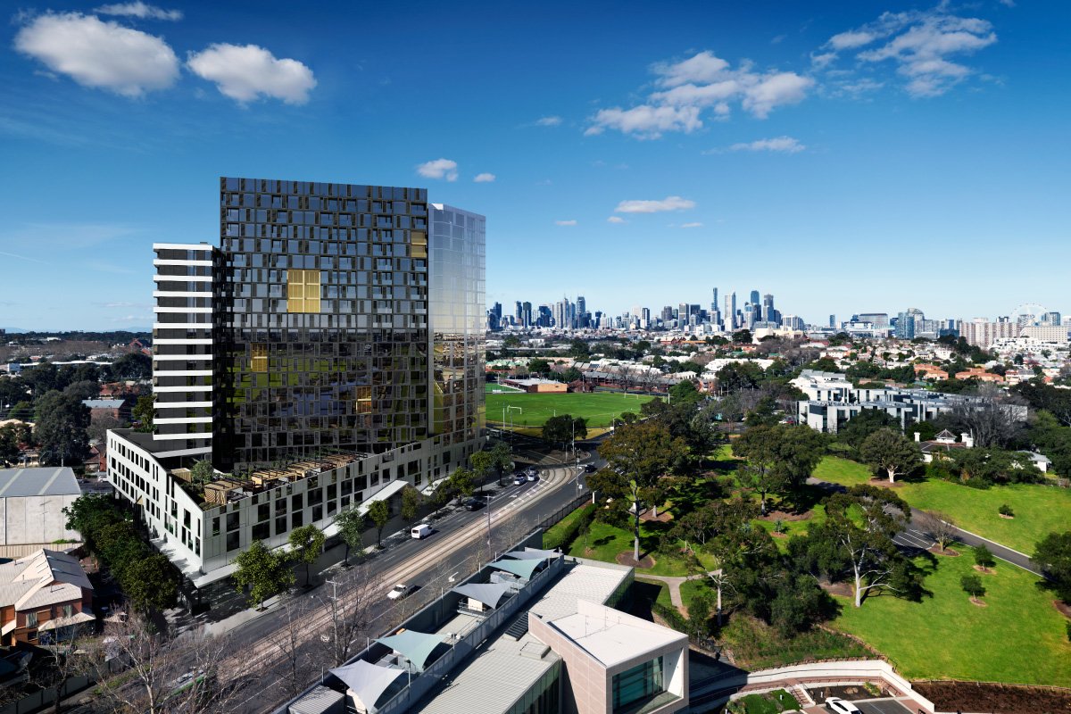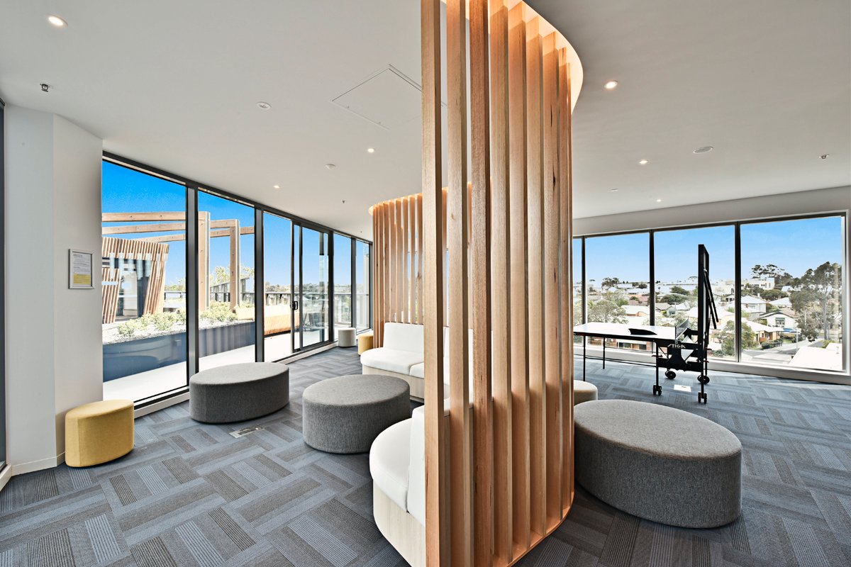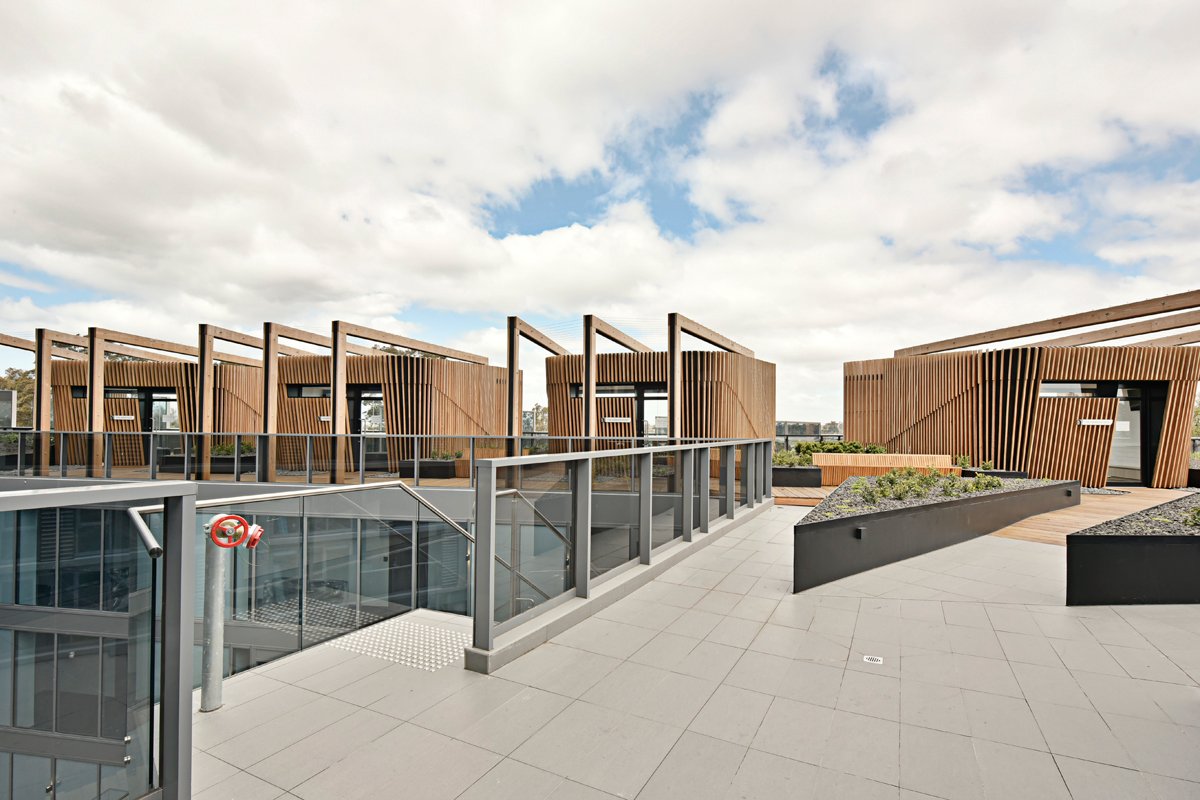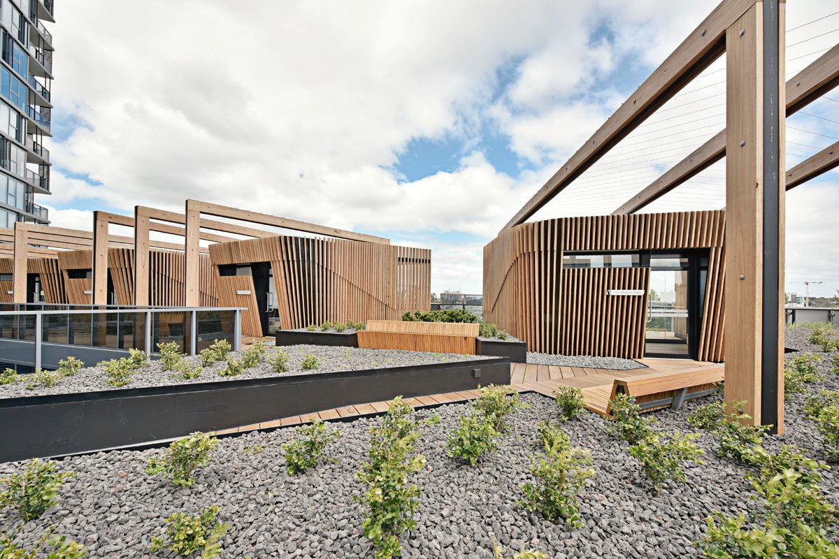 Residents of ONLY will experience a stunning sanctuary deck complete with a swimming pool overlooking views of the city. The unique entertainment pods all feature uninterrupted views of the Flemington Racecourse. Inside, the statement-making lobby has many features including perforated metal sheet cladding that wraps around the mailbox area. Inspired by the site's racing pedigree, DKO Architecture has designed a multifaceted building with fluid, dynamic lines.