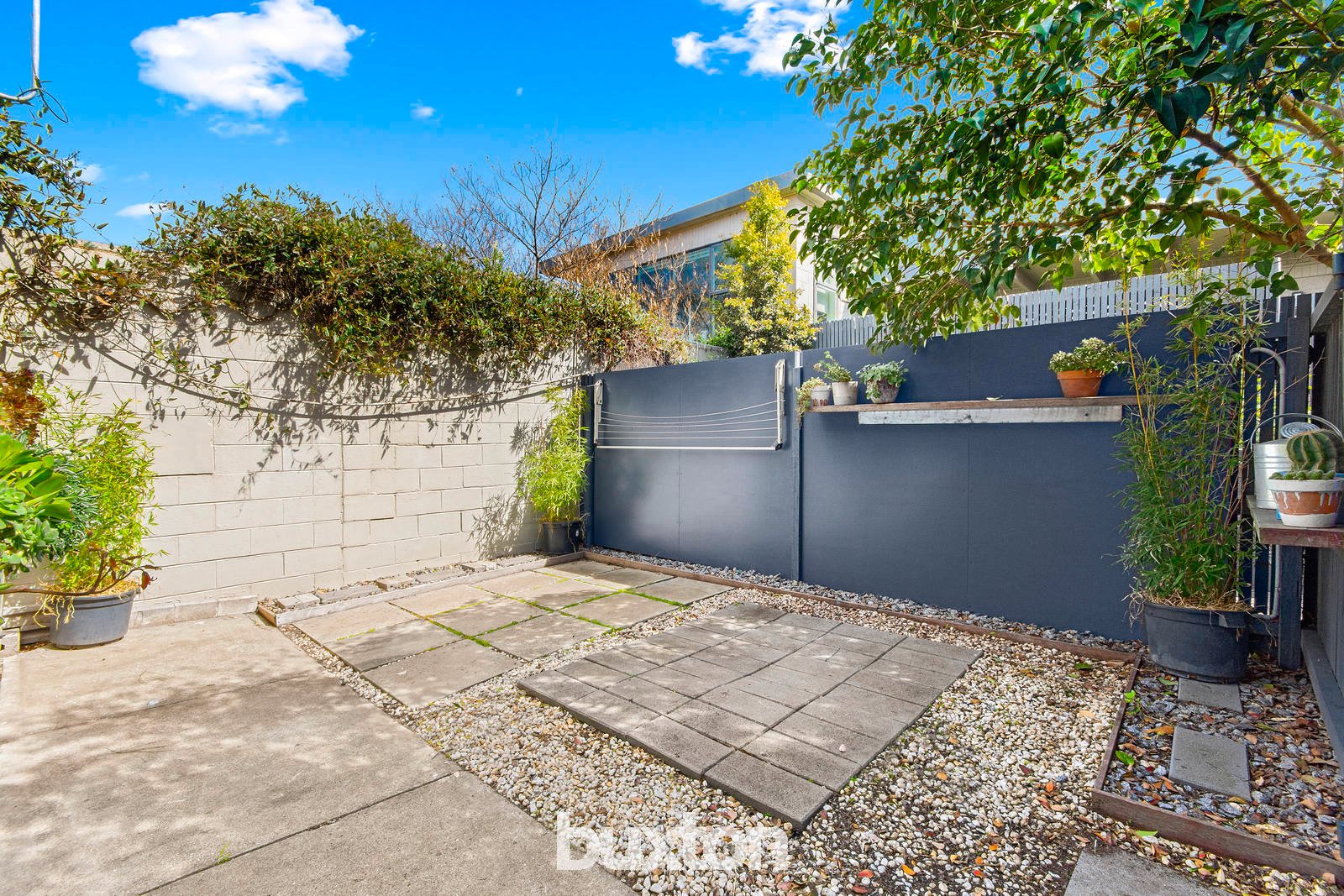 A neat, private and generous front courtyard is the ideal place for a garden, outdoor setting and the entertainment of family & friends.