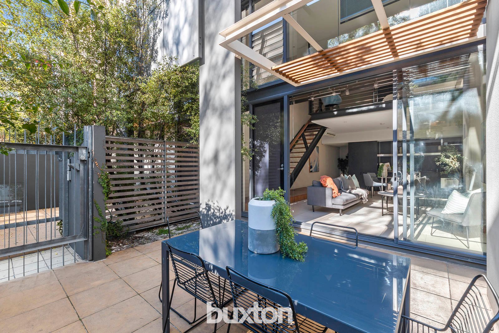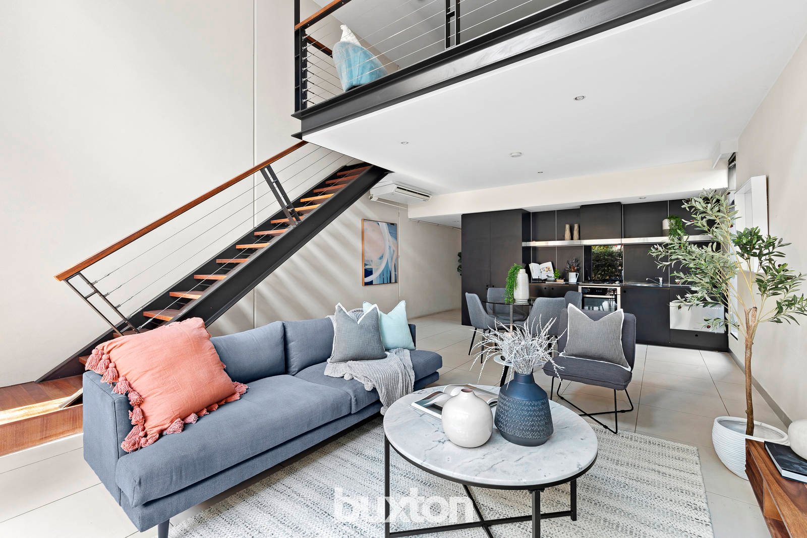 Ideal for busy professionals and out-of-towners seeking a secure and serene inner-city abode, this fabulous New York-style residence offers dual-floor space and comfort within SY21, long-regarded as South Yarra’s premier resort-style complex. Entering via a private easy-care garden courtyard for alfresco relaxation, double-height windows welcome natural light into the open-plan living/dining areas (kitchen with gas appliances & drawer dishwasher), while the loft bedroom boasts built-in robes, a generous lounge/study zone and an ensuite bathroom. Excellent communal facilities (indoor pool, spa, sauna & gym) amidst lush landscaped gardens enhance the allure of this rare offering between the Yarra River and Toorak Rd, where city transport, local cuisine, chic cafés and vibrant nightlife are all in the immediate vicinity. Includes two secure side-by-side car spaces enjoying direct private access, ground-floor w/c with concealed laundry, heating/cooling and security intercom.