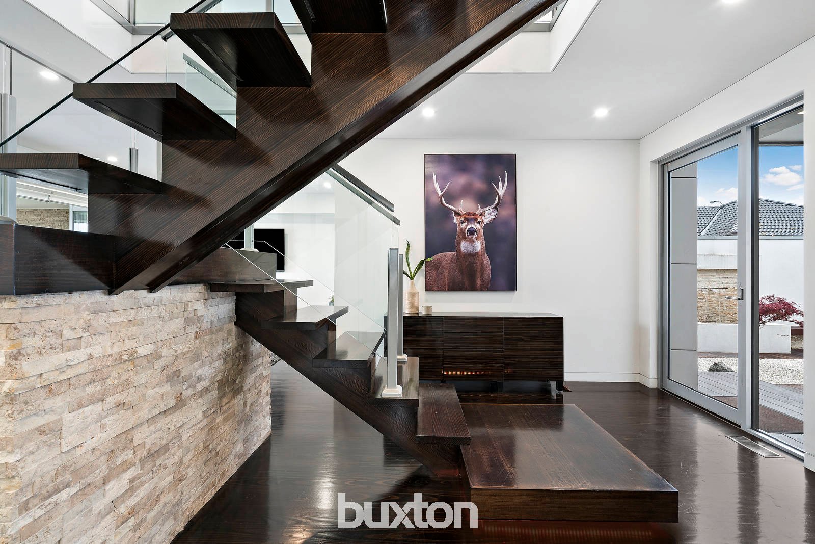 Perfectly positioned 300m from the beach and set on a generous 755m2 (approx) block, this luxury 4 bedroom family entertainer will embrace you with its warmth and sophistication the moment you step inside. Designed for effortless entertaining the well-equipped gourmet kitchen (WIP) and light filled open plan living cleverly fuse with a decked outdoor room via stackable glass doors. Flowing onto a paved alfresco dining zone, outdoor kitchen and lush lawn – this is the ideal spot to gather family and friends. Spacious and stylish, this low-maintenance home boasts a theatre room, study and exceptional finishes including timber floors, stone benchtops, and zoned in-ceiling speakers. Upstairs, discover a serene parent retreat with deluxe ensuite, walk-in robe and balcony, three oversized bedrooms (BIRs) and chic bathroom with walk-in shower and freestanding bath. Features ducted heating, split systems, powder room, ducted vac, video intercom, alarm, Clipsal Bus home automation system, solar power and solar hotwater, huge shed or potential games room in rear yard, double auto garage (workshop) 7.5m x 7.0m and ample off-street parking (room for boat/caravan) behind secure auto gates. Enviably located a short walk to popular cafes, rail and schools.