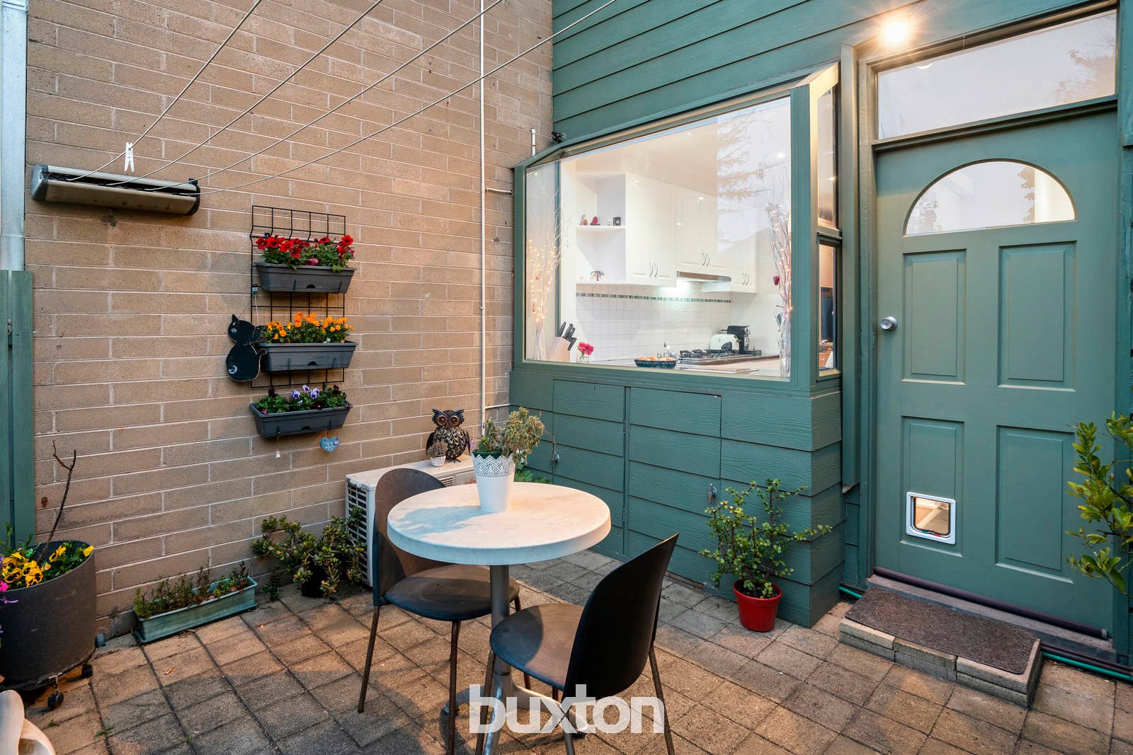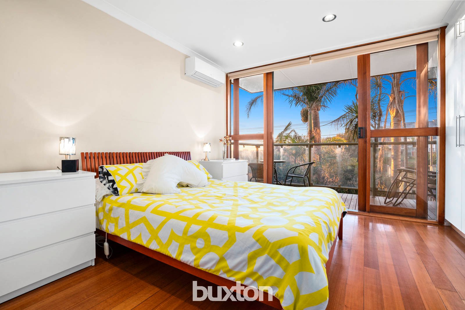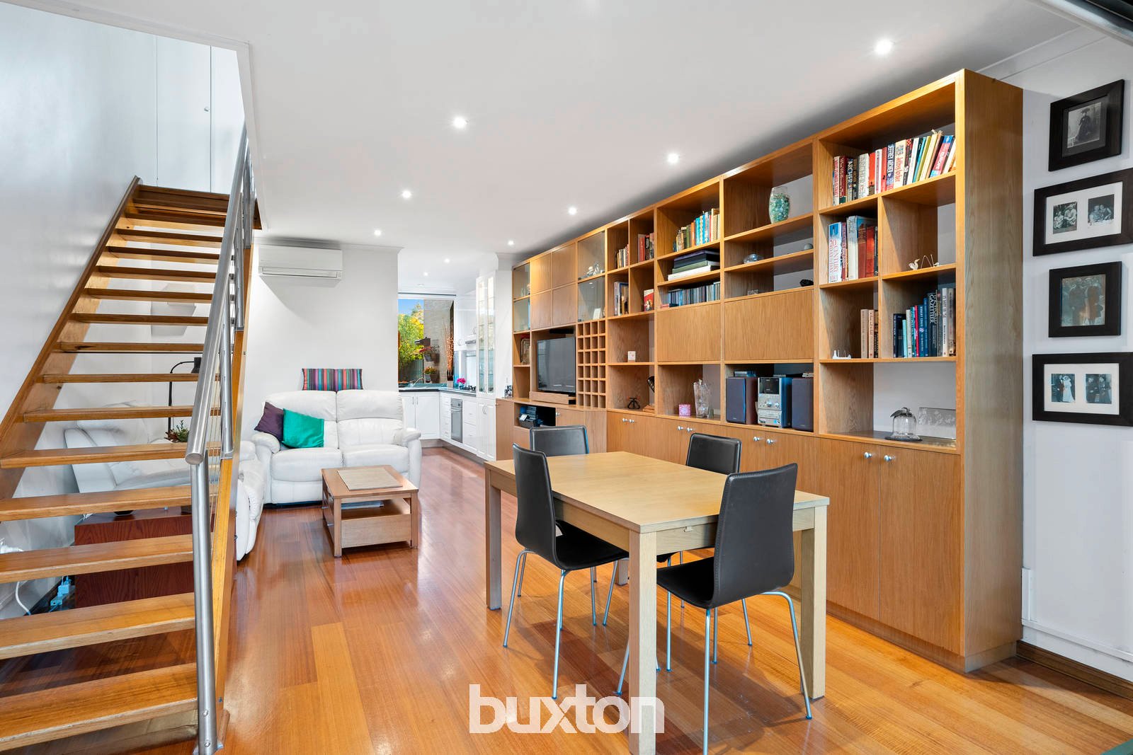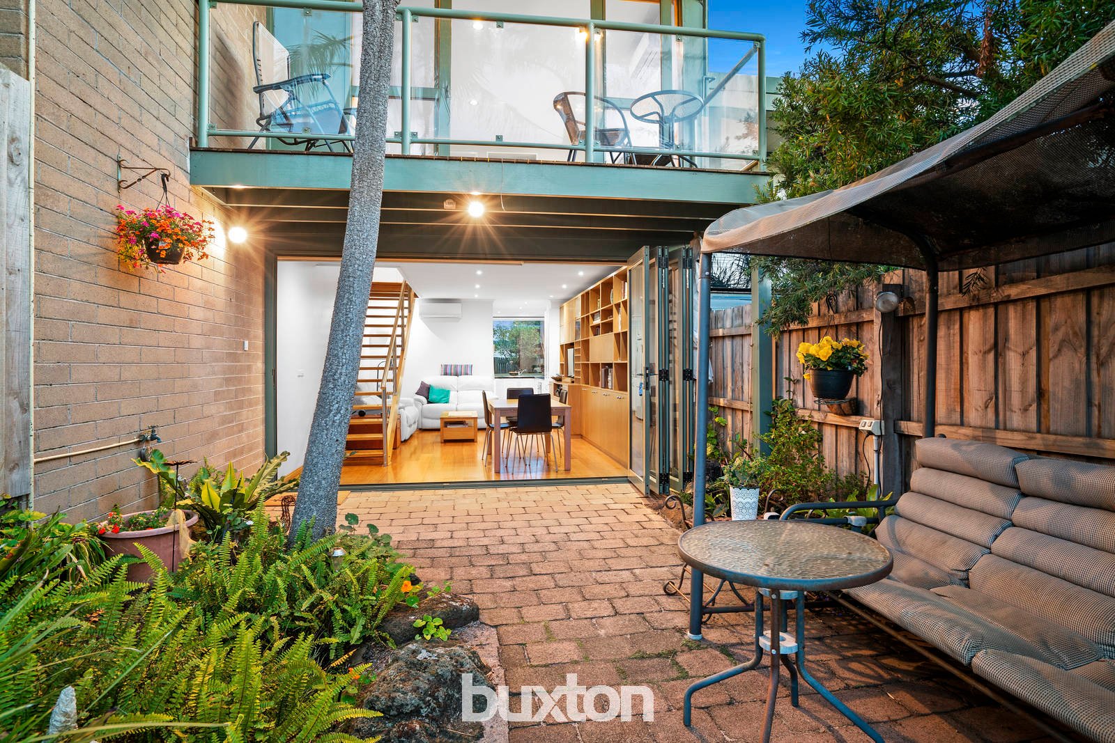 Opening out inside, outside, upstairs and down with a wall of north-facing bi-folds for living and a light-catching 'garden-window' for the glossy granite kitchen, this inviting townhouse also reaches out to the bay… with a beautiful balcony for the master bedroom. Bespoke-fitted with endless storage including a full wall of media and display cabinetry for living, and vast robes for both bedrooms, this garden townhouse has reverse-cycle air-conditioners upstairs and down, warm hardwood floors throughout, and a carport on-title just beyond the back gate.