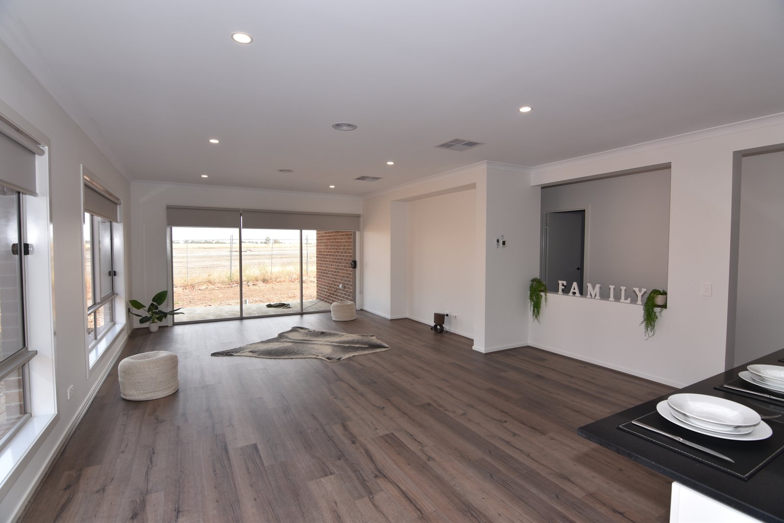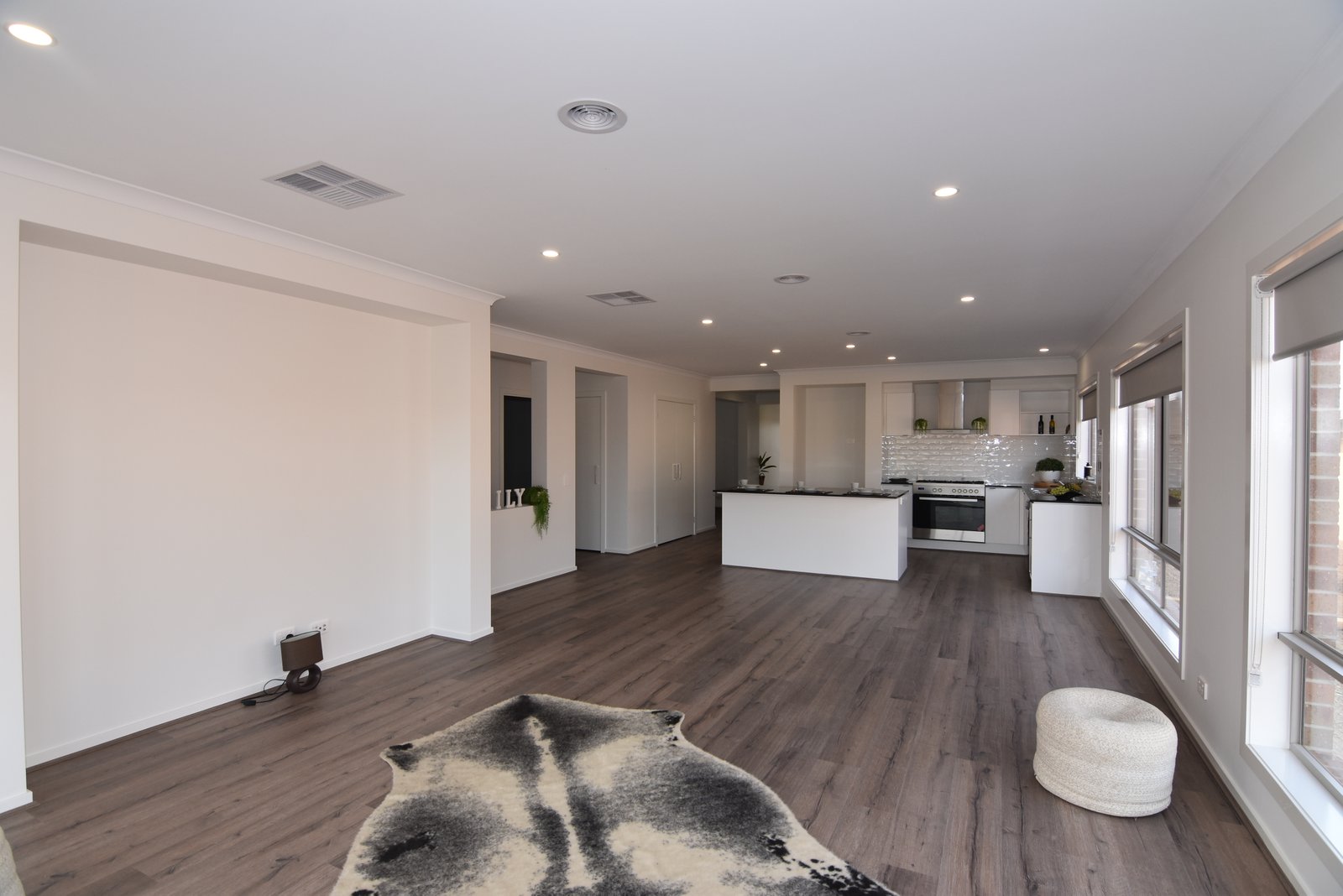 * Open plan kitchen, meals, living area