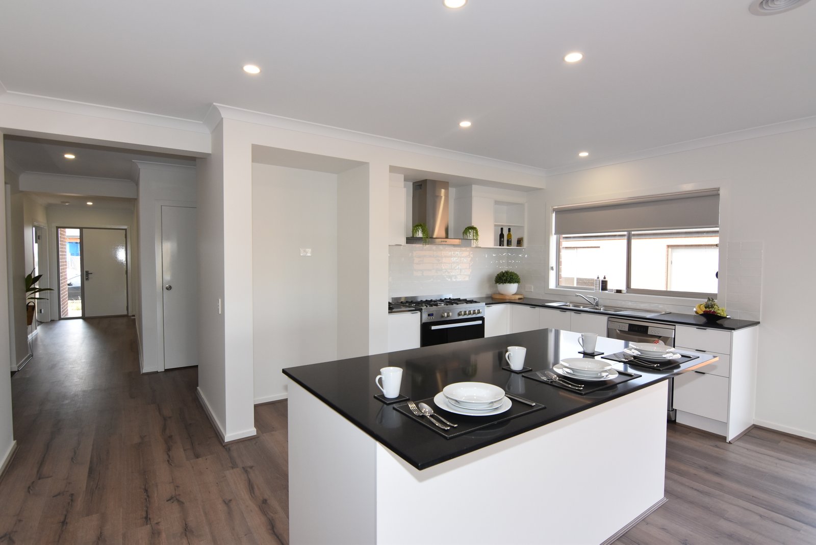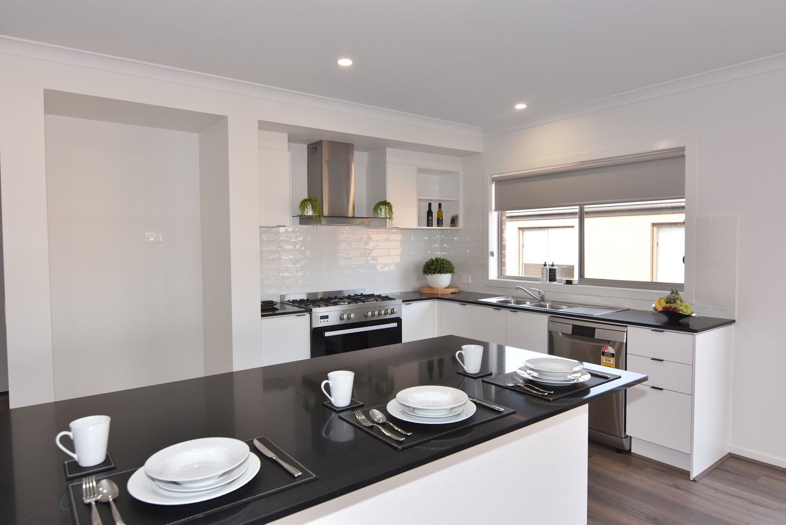 * Spacious kitchen with stone benchtops, gas cooking and dishwasher