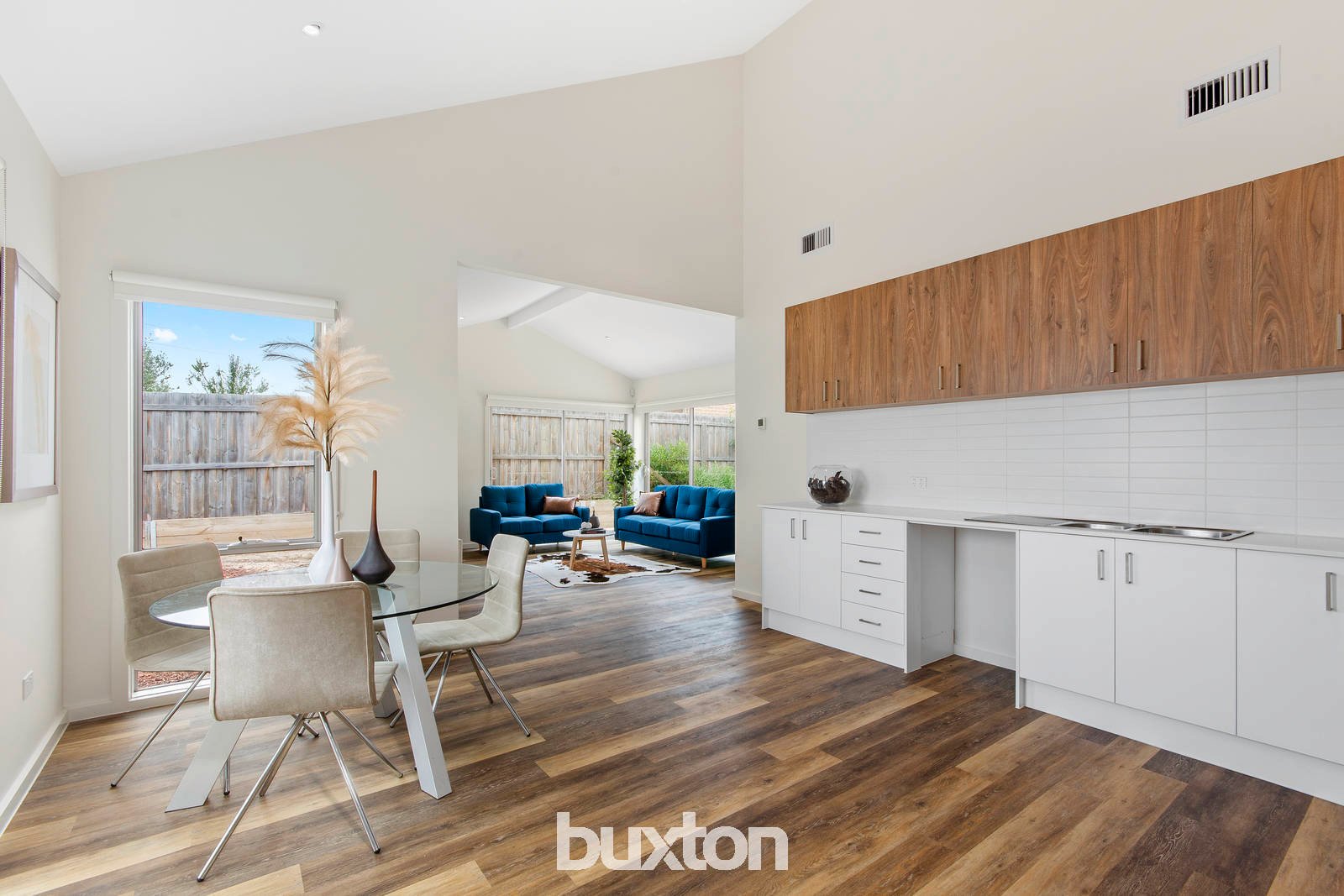 With cathedral ceilings & light filled open living spaces, quality kitchens offering stainless steel appliances including dishwasher, along with caesar stone benchtops, timber look flooring in the kitchen and main living, carpeted bedrooms with built-in robes, gas central heating, solar gas hot water systems, fully landscaped front and rear yards, timber fencing, single garage.