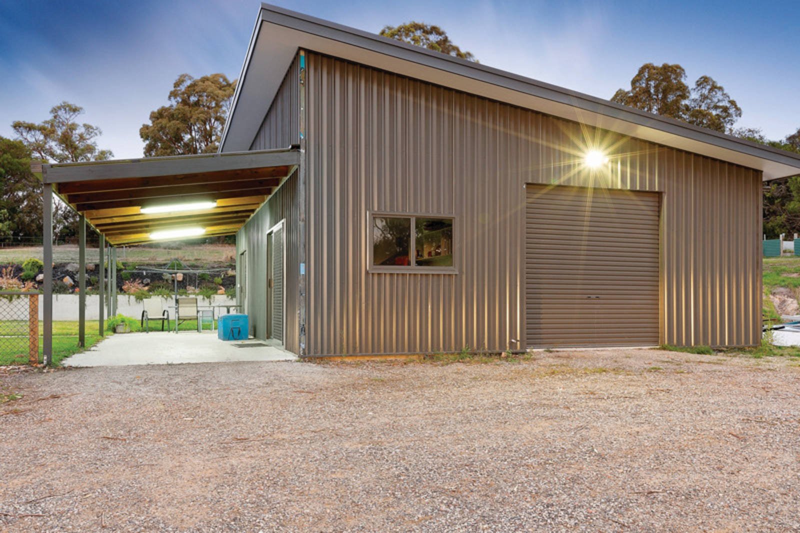 From the kitchen are double doors leading to an undercover entertaining area with a data point for a tv, wood storage door, open fireplace and a retaining wall garden area that is a blank canvas. There is also another outside enclosed area which leads from the back rumpus room, this area includes a tank (for flushing of toilet), an easy to maintain lawns and retaining wall gardening area with weeping rosemary hanging over. The shed is massive and split into two separate sections, one is currently being used as a commercial kitchen for a catering company but would also be perfect for a studio. The other part is even bigger and includes overhead storage / mezzanine area, a separate toilet and would be perfect for a work shop, storage for a caravan, or a double garage with a remote lock up roller door. There is also an undercover double carport attached. Other features of this impressive property include fruit trees, worm farm, wash bay, vegetable patch, and an extra shed for storage out back. This property is truly amazing and one which needs to be seen to believe, call now to book an inspection.