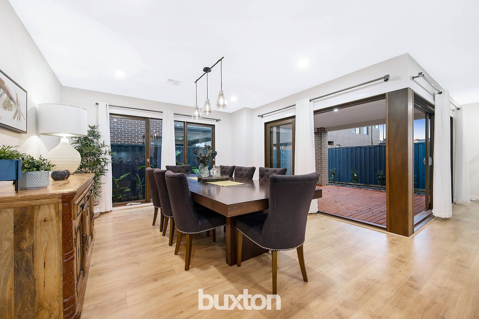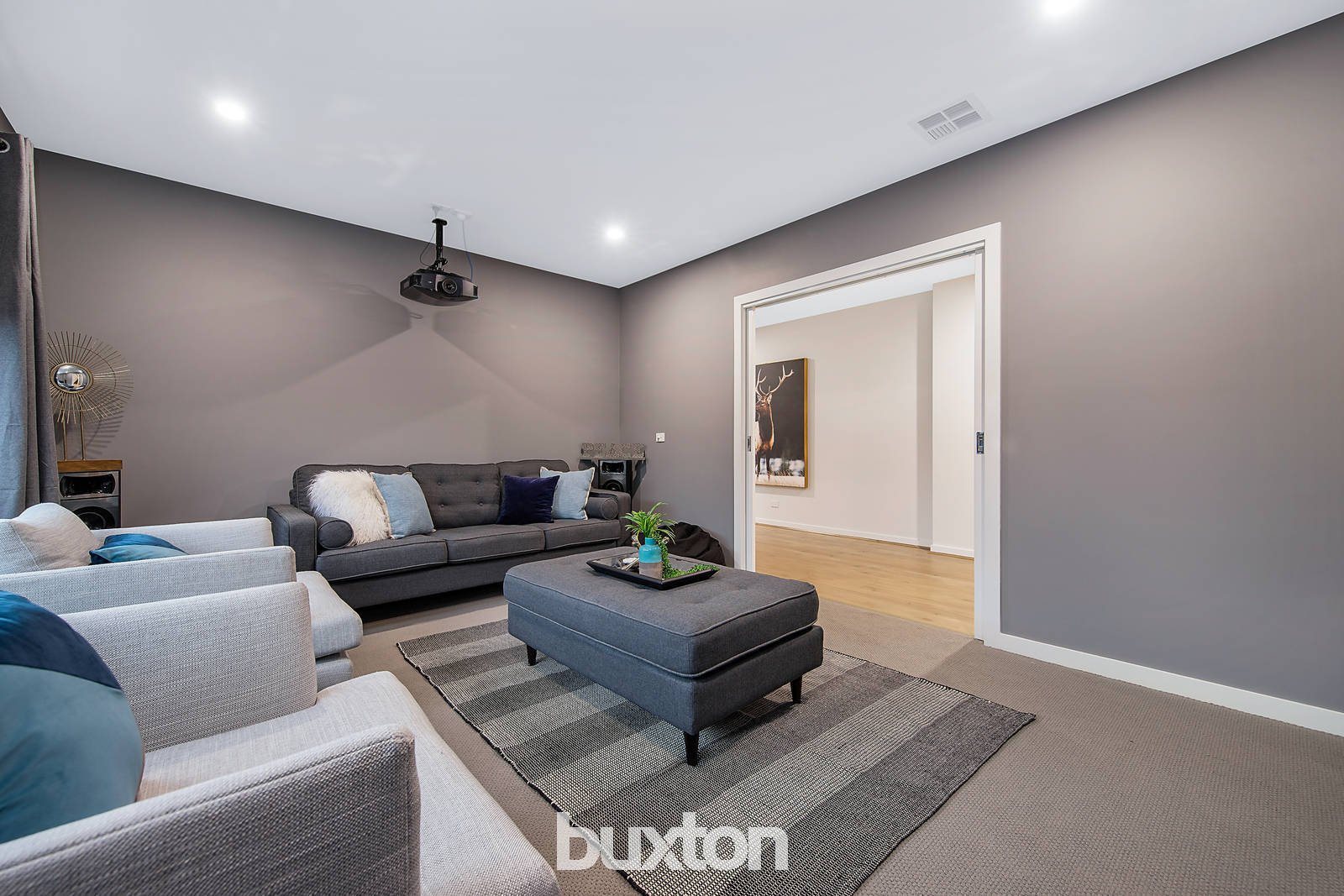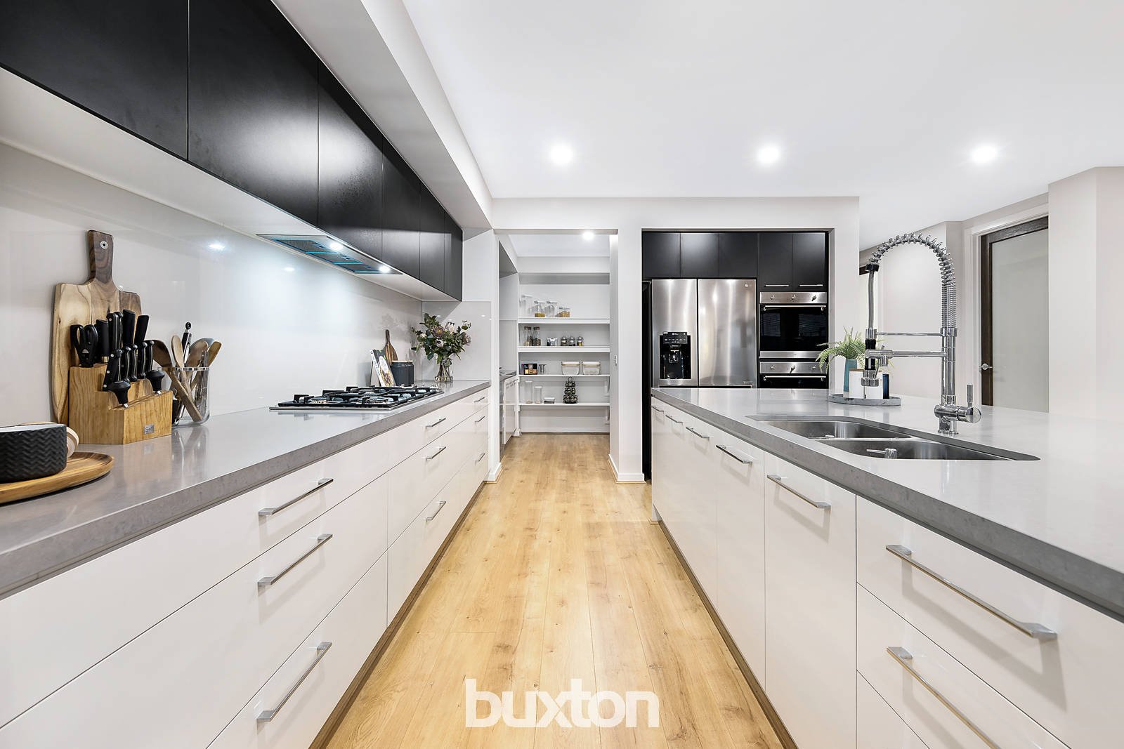 As you are greeted with a remarkable façade & wide hallway, upon entry is a formal lounge and theatre room that further leads to a spacious open plan kitchen & living area. The outstanding kitchen comprises of an oversized stone island bench top with waterfall stone, under-mount double bowl sink, glass splashback, double Smeg oven & dishwasher. Pot drawers & silk finish soft close cabinets in the Kitchen. Moreover, is a butler’s pantry neatly tucked away yet offering a surplus of storage space. You can further entertain your friends & family by heading outside through the set of sliding doors to the undercover alfresco with timber flooring, alongside a low maintenance backyard.