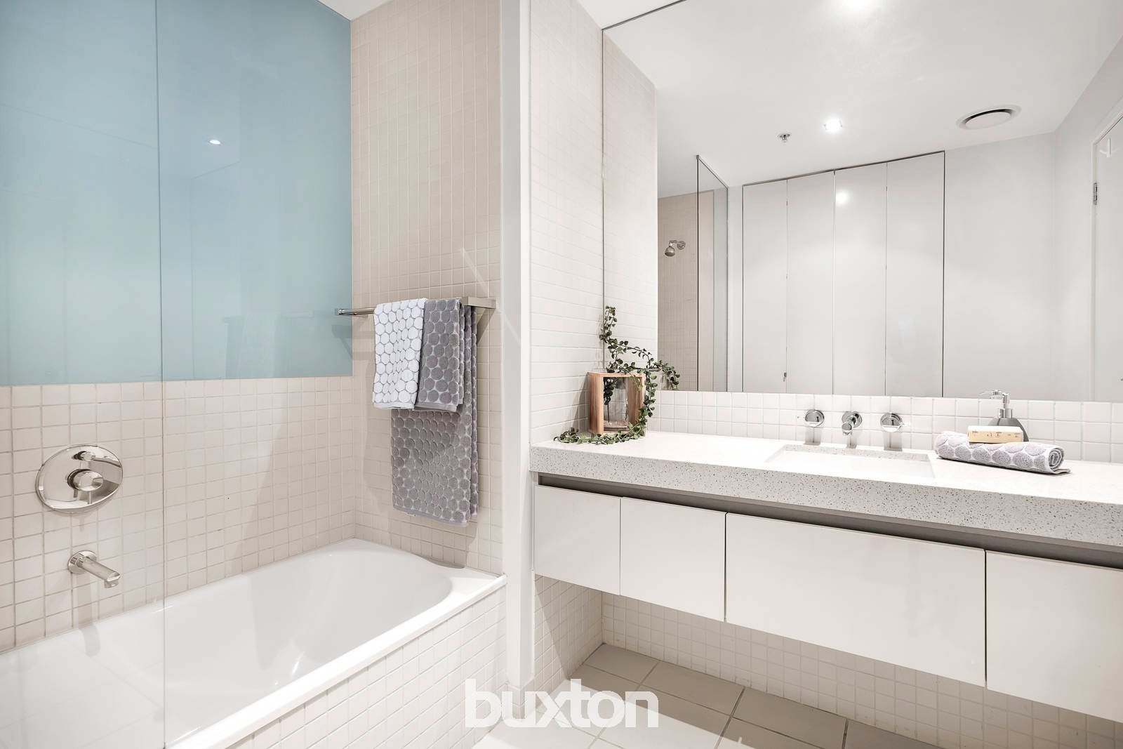 Larger than most with its exceptional 55sq terrace and home office yet so beautifully proportioned against its winning water view, this two-bedroom two-bathroom apartment boasts everything that makes Bayview such a consistently sought after setting. Beautifully bright, impeccably finished and with a stylish layout that delivers easy living, this is an exceptional opportunity to experience a bayside lifestyle in enviable surroundings. Generous open plan living/dining spaces and a fully appointed stone kitchen of equally impressive size slide back to the magnificent terrace and its irresistible view, an advantage shared by the oversized main bedroom with its deep WIR, fitted drawer storage and impeccably presented stone ensuite. Other highlights include a second bedroom with BIRs and terrace views, spacious open study/home office featuring desk and extensive built in storage, immaculate principle bathroom also with excellent storage, smeg kitchen appliances and integrated fridge/freezer, ducted reverse cycle heating/cooling, secure entry, lift access and two car basement parking. Bayview’s renowned resident facilities include heated pool, full gym and landscaped communal gardens just meters from the beach and Bay Street’s famous boutiques, cafes, restaurants and nightlife.