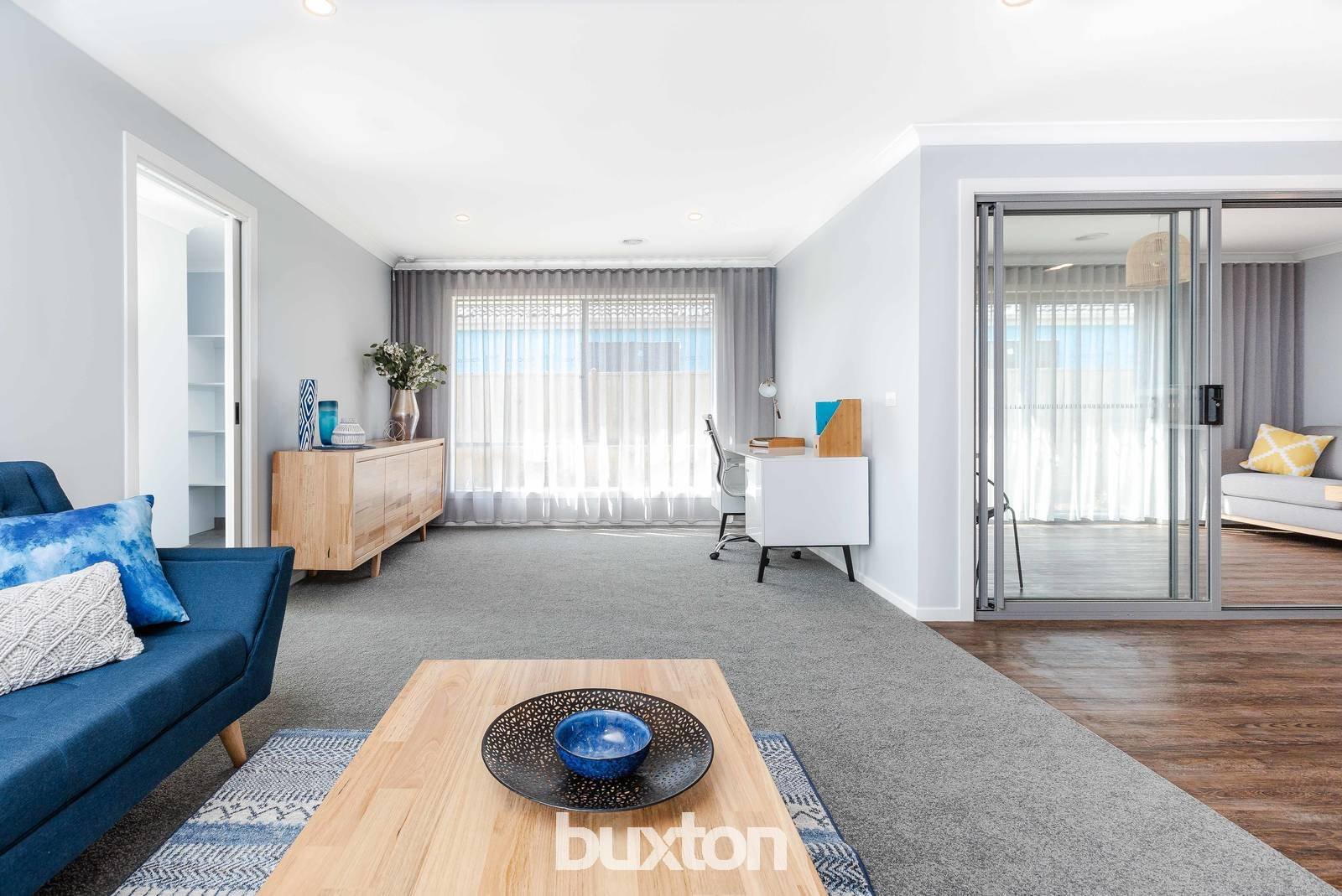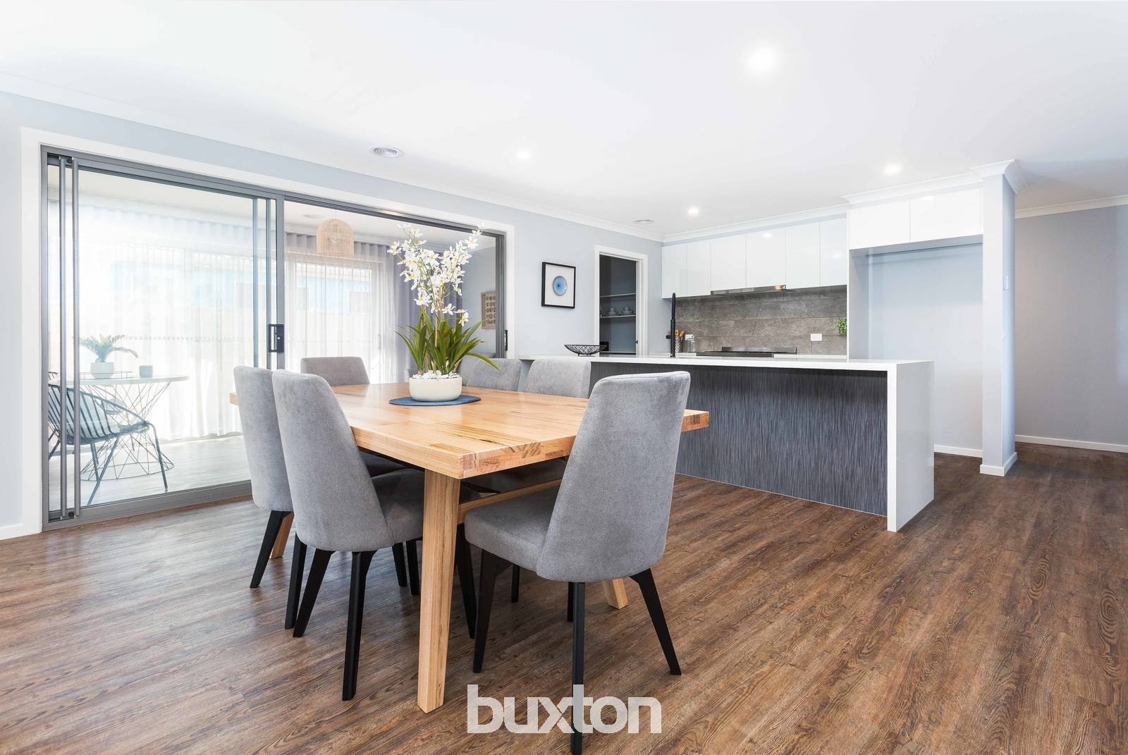 The main open living area is in the heart of the home, including a stylish kitchen (900mm cooking, stone benchtops & huge walk in robe), connecting seamlessly to the meals, family and open study area – a great space for the family to be together! Access to the undercover and protected sunroom is seamless, allowing for indoor & outdoor living at its best.