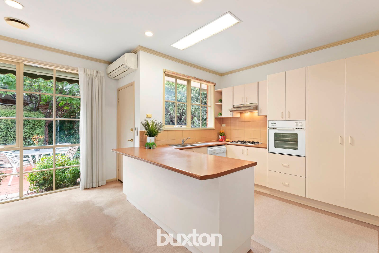 A classically appointed kitchen, featuring quality appliances (dishwasher and brand new range hood), wrap around benches and a breakfast bar, looks out to the leafy courtyard. An adjoining laundry is well position and offers access to a versatile third bedroom conversion that could easily double as a home office or ideal teen retreat.