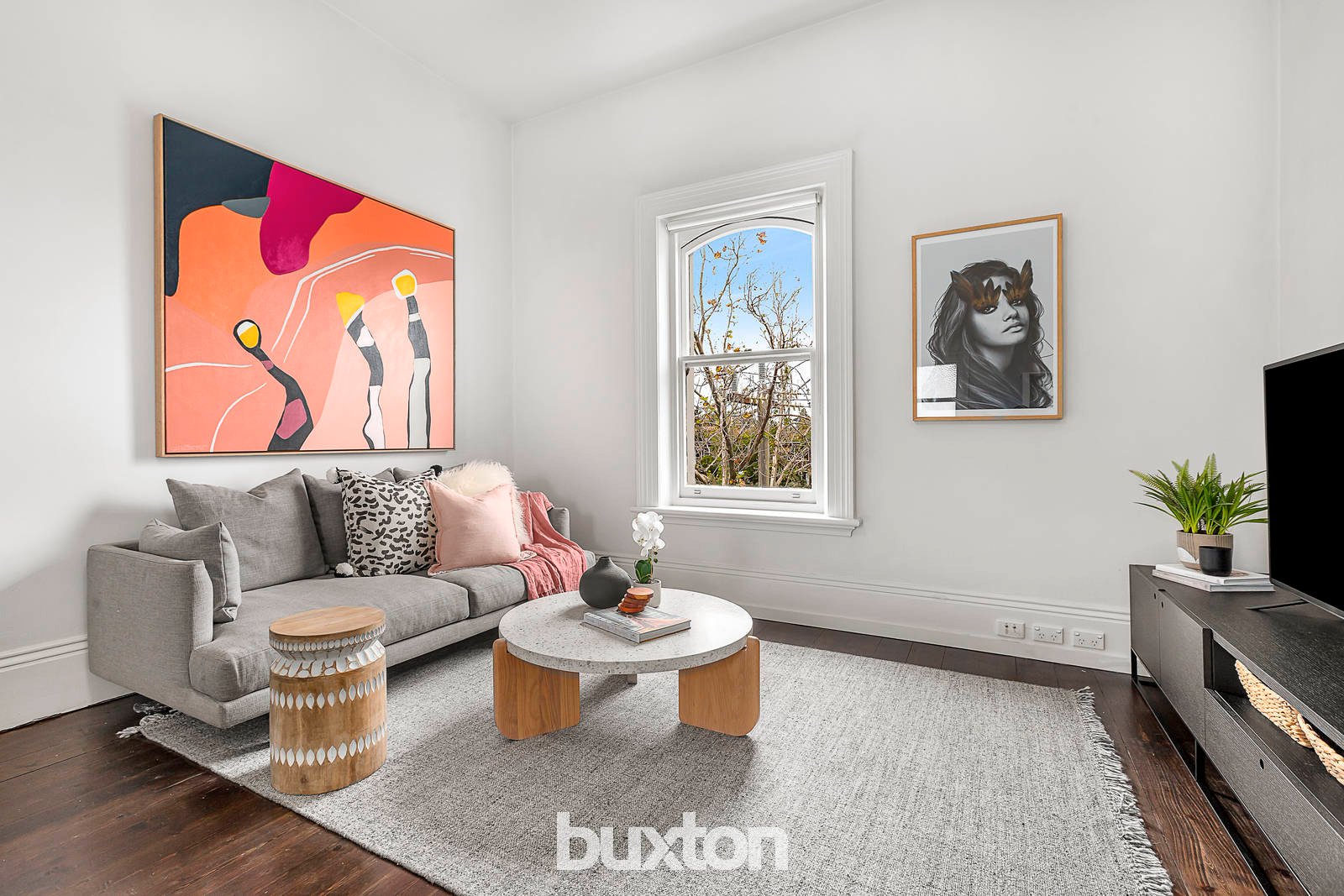 A rare offering in a boutique and highly coveted block, this top-floor apartment is set within a grand 1880’s Victorian mansion and combines stunning heritage features with modern appointments. Directly opposite the beautiful Alma Park this secluded residence is nestled within a secure, historic enclave. Soaring ceilings, high skirtings, tall double sash windows and dark timber floorboards define a beautifully bright living/dining domain with leafy views and reverse-cycle air conditioning. The expansive bedroom with built-in robes also offers a generous study or home office area with built in desk and storage. The streamlined modern kitchen pairs stainless steel benchtops with Miele appliances, a dishdrawer dishwasher and laundry facilities whilst the bathroom is luxuriously appointed with marble surfaces and an oversized shower. Complete with video intercom entry and secure off-street parking on title, this fabulous home is only moments from Chapel Street and just a short stroll to a variety of amazing facilities and restaurant precincts. Combined with great public transport links to St Kilda and the CBD, this is a fabulous first home or investment in a highly sought after location.