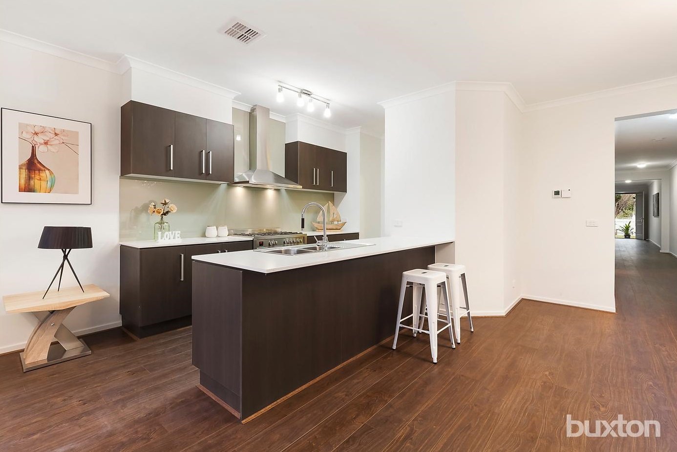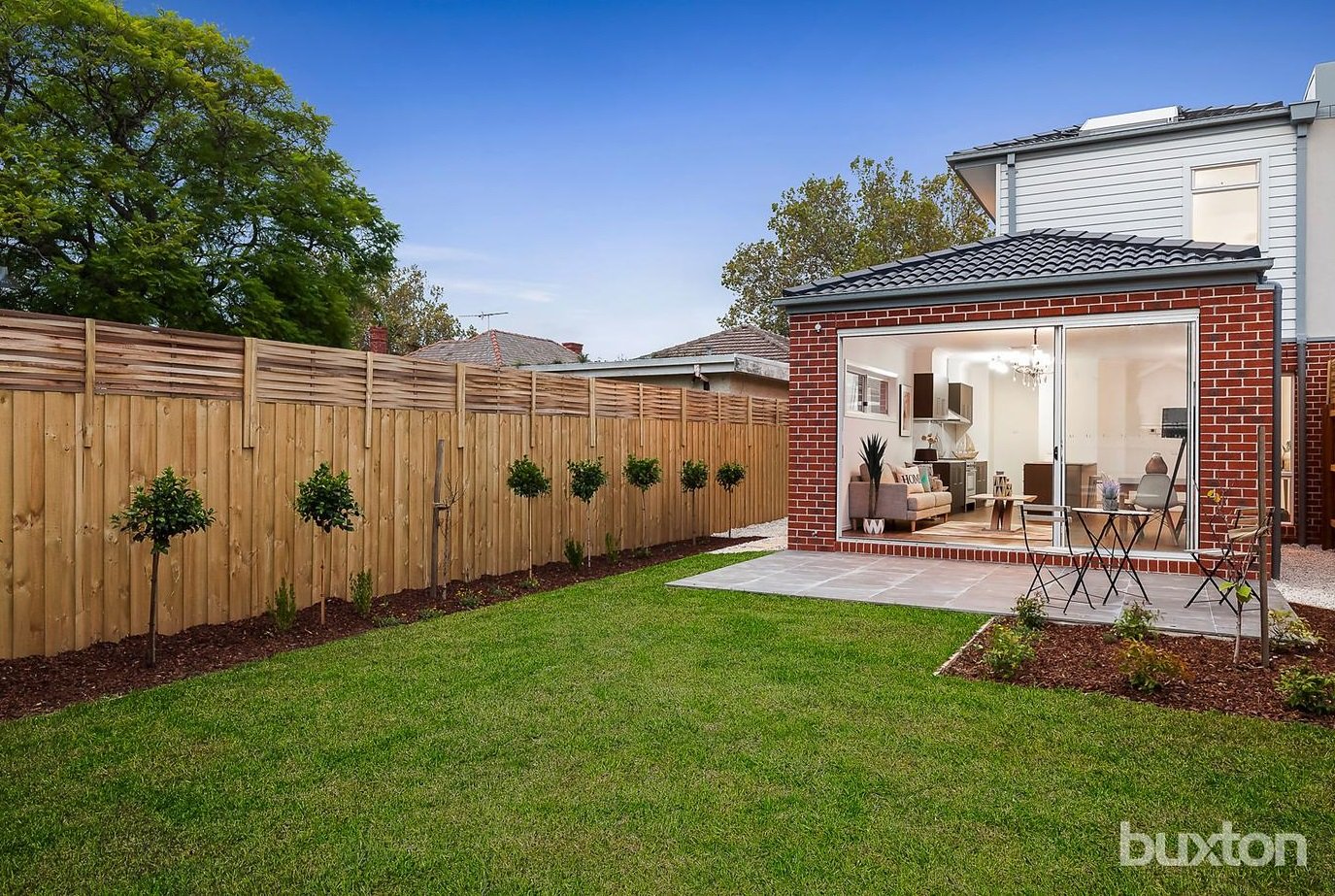 This immaculate four-bedroom townhouse offers stylish family-sized living in low maintenance surrounds just moments to Martin Street's vibrant cafe scene. Idyllically situated on one of Brighton's most sought-after tree-lined boulevards and boasting a desirable north-facing rear, the home opens to reveal luxe oak floors which flow seamlessly throughout the ground floor living spaces. Flushed with natural sunlight, the spacious open plan family room and dining area look out to the landscaped back garden. Overlooking this fabulous space is a designer kitchen with quality stainless steel appliances, walk-in pantry and Caesarstone benchtops. The ground floor master suite is a desirable inclusion and features a bank of built-in robes plus smartly-finished en suite. Three additional bedrooms can be found upstairs, all benefit from built-in robes and share a stunning family bathroom with luxe bathtub. An upstairs retreat/TV room, bright laundry with access to a sunny drying terrace, ducted heating and cooling, powder room, and water tank and auto garage with convenient internal access.
