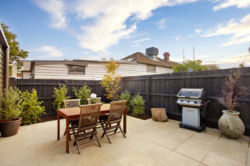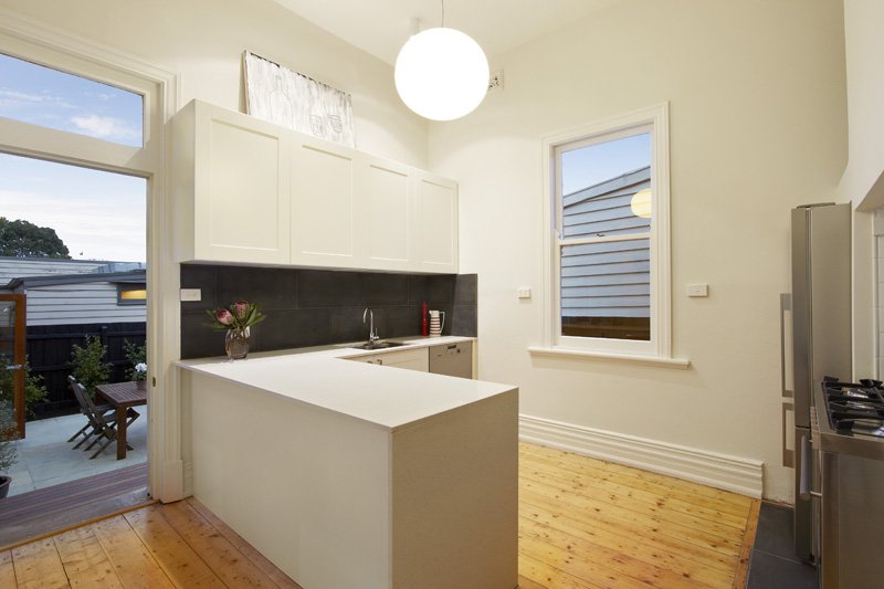 this spacious three bedroom Edwardian Home has been refined and renovated with a contemporary edge. The high period ceilings, polished floorboards, lead-light, original fireplaces and fretwork of the original spaces links smoothly to a bright central living/dining and a superb kitchen featuring European appliances, Caesar stone benches and bluestone tiles. Also includes a separate laundry.