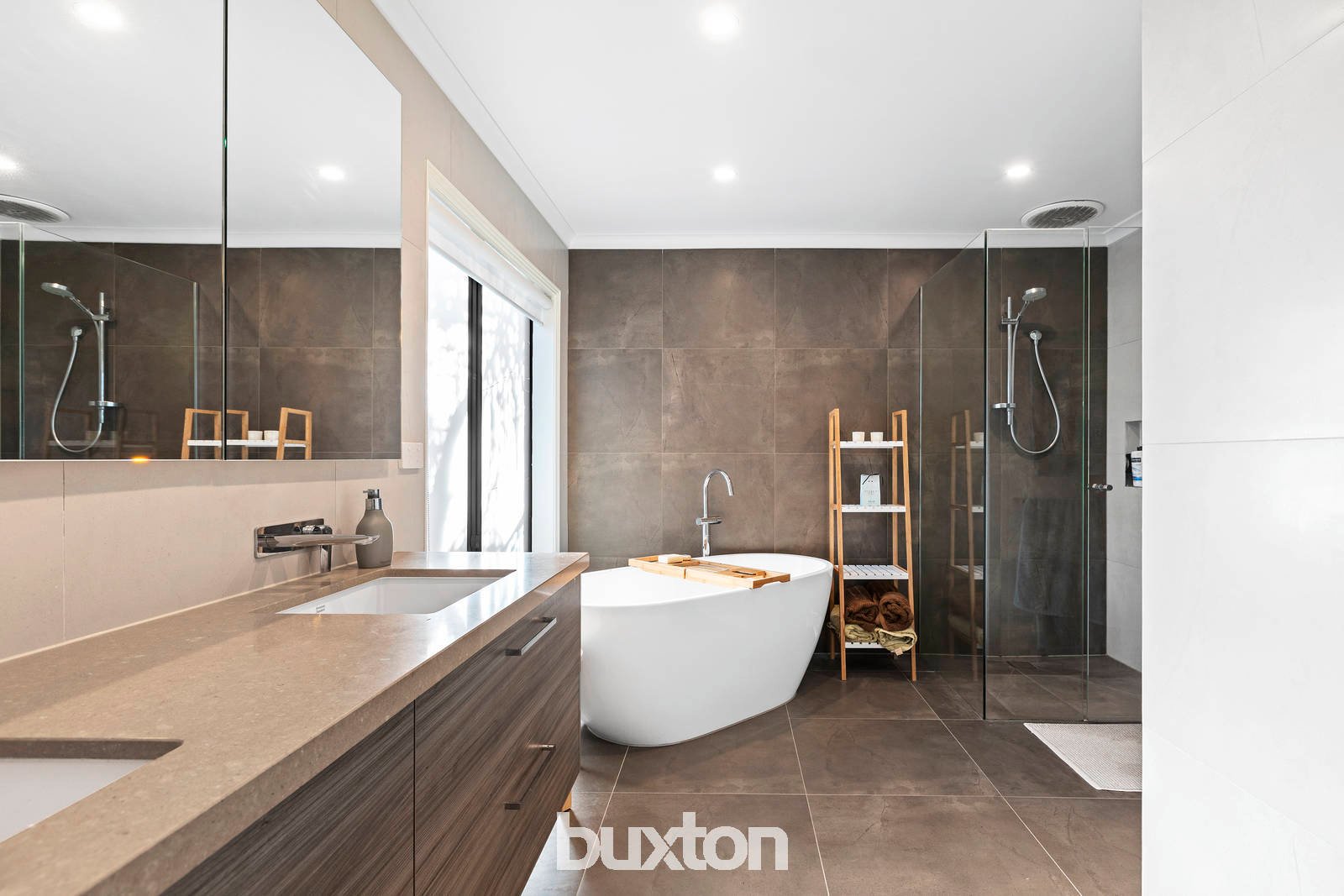 All four bedrooms are positioned upstairs - an exquisite fully-tiled ensuite with decadent bath is the star of the master bedroom whilst a central family bathroom and separate WC service the remaining bedrooms. A ground floor study could double as a fifth bedroom if needed. Wrapping up a long list of inclusions are a first-floor landing retreat, powder room, laundry with rear access, alarm, ducted heating and evaporative cooling. A double garage with rear roller door access and a second driveway with parking for a boat or caravan are also offered. This unbeatable family sensation is close to Aspendale shopping centre and primary school, parklands and plenty of walking & cycling tracks.
