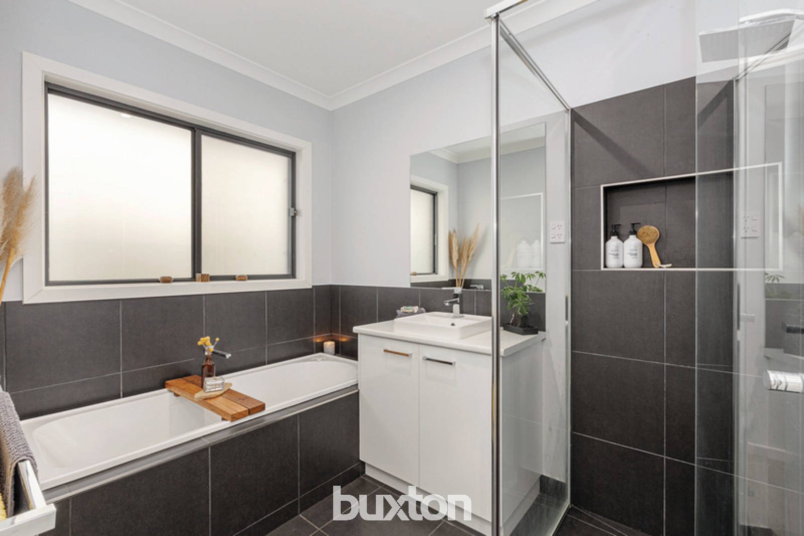 Additional queen sized bedrooms both with built-in-robes and a central bathroom with bath, shower, vanity and separate toilet. From the living area, doors open out onto large (3.3m x 7m) undercover alfresco dining with firepit area. Fully landscaped low maintenance garden and lawned area with Australian Natives and Fruit Trees. Double lock up garage with rear roller door access, space for additional vehicle. Other features of this very impressive home include security system throughout (internal motion detection alarm and external CCTV accessible via TV/smartphone), double glazed windows, gas central heating and evaporative cooling throughout, separately fenced 8m long raised veggie garden with full irrigation system, garden shed and 2,000L rainwater tank. This home will surely impress, don’t wait, call today to book your private inspection.