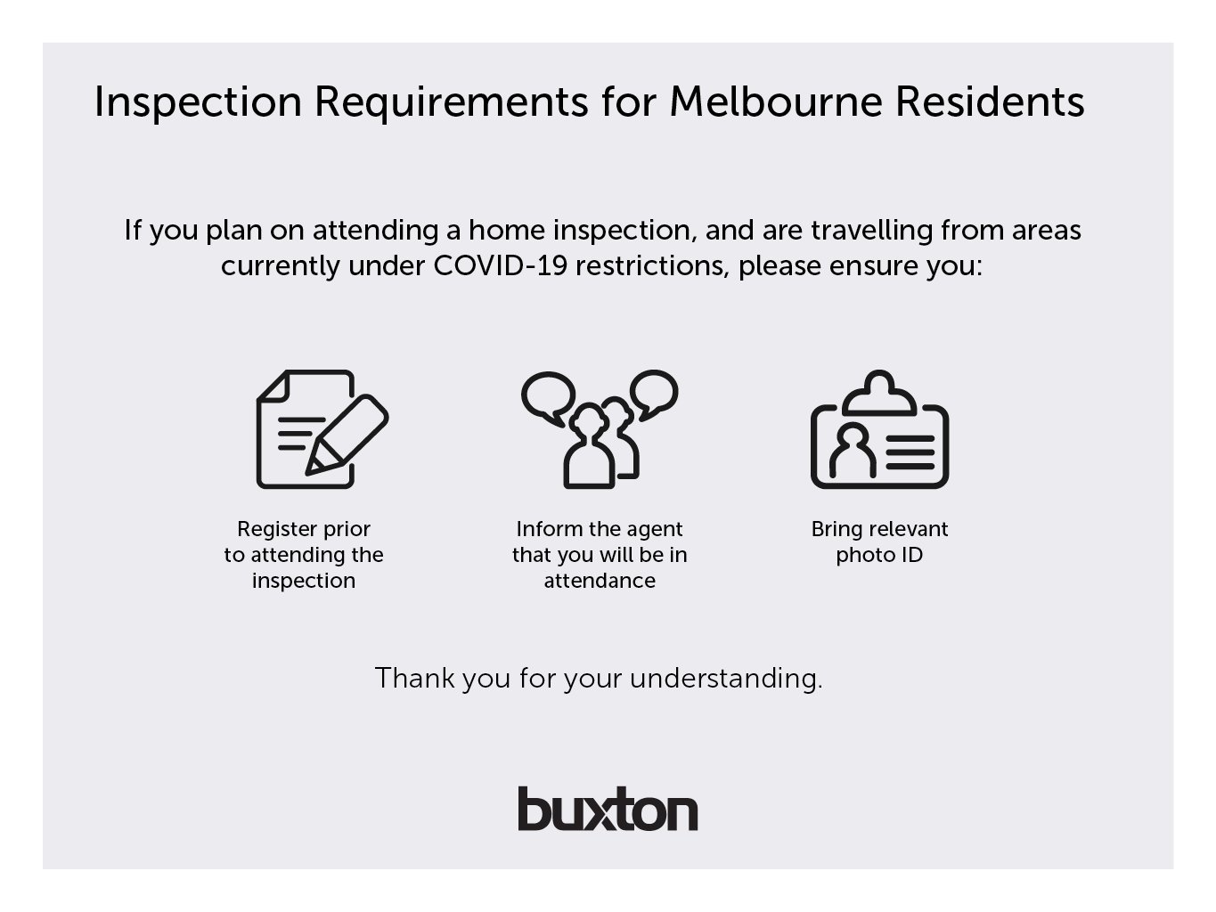 Or go to our website www.buxton.com.au and press the BOOK INSPECTION button to register for a time that suits you.
