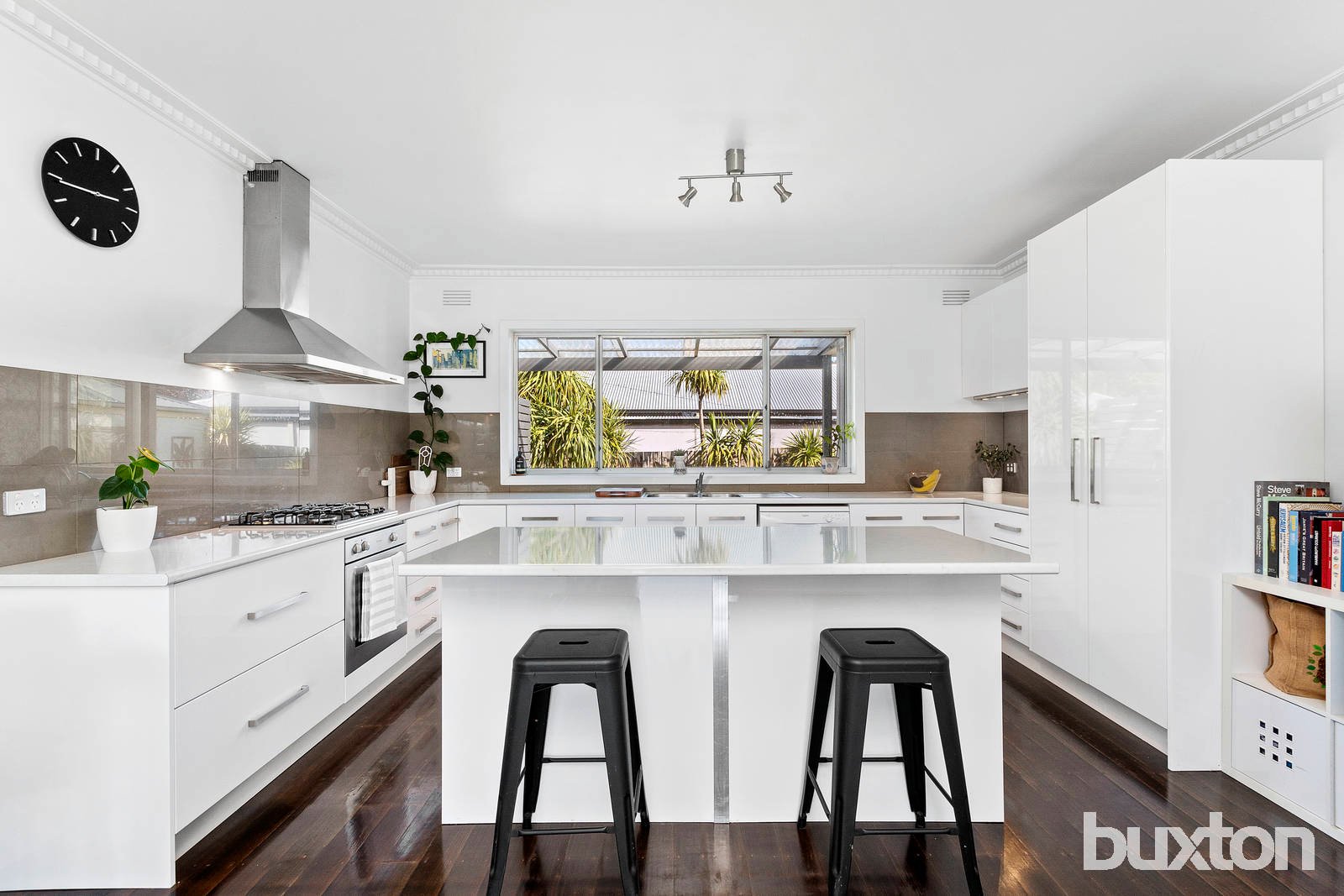 The north facing living room with split system overlooks the front porch before opening out into the large, bright kitchen and dining area. The refreshed open kitchen with dishwasher and stainless steel Westinghouse oven and gas stove has a great feeling of space with ample bench and cupboard space, island bench/breakfast bar and room for a large fridge. Looking over the entertaining deck and backyard, this kitchen definitely feels like the heart of the home.