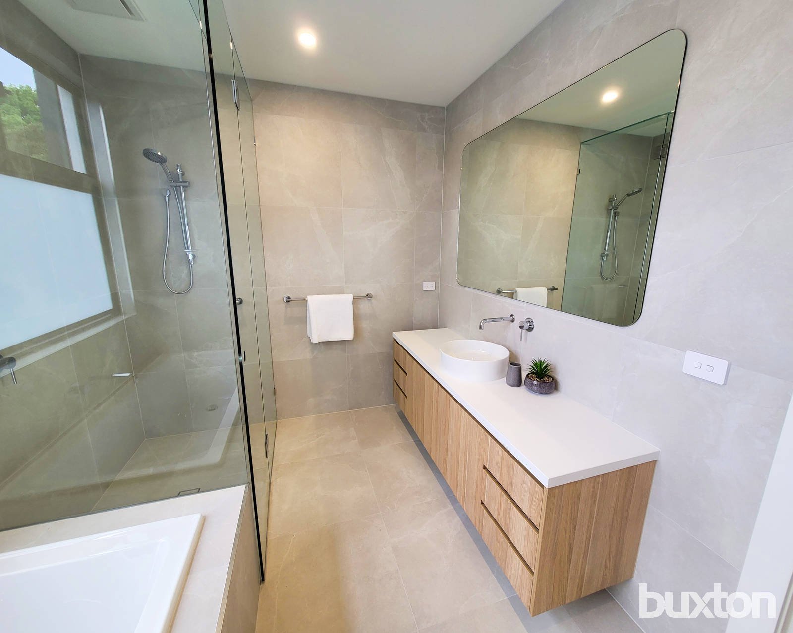 Accommodation is generous and includes a ground-floor master bedroom with walk in robe and sumptuous twin-vanity ensuite with huge double shower; while upstairs three additional bedrooms all with fitted wardrobes, are serviced by a stunning fully-tiled family bathroom.