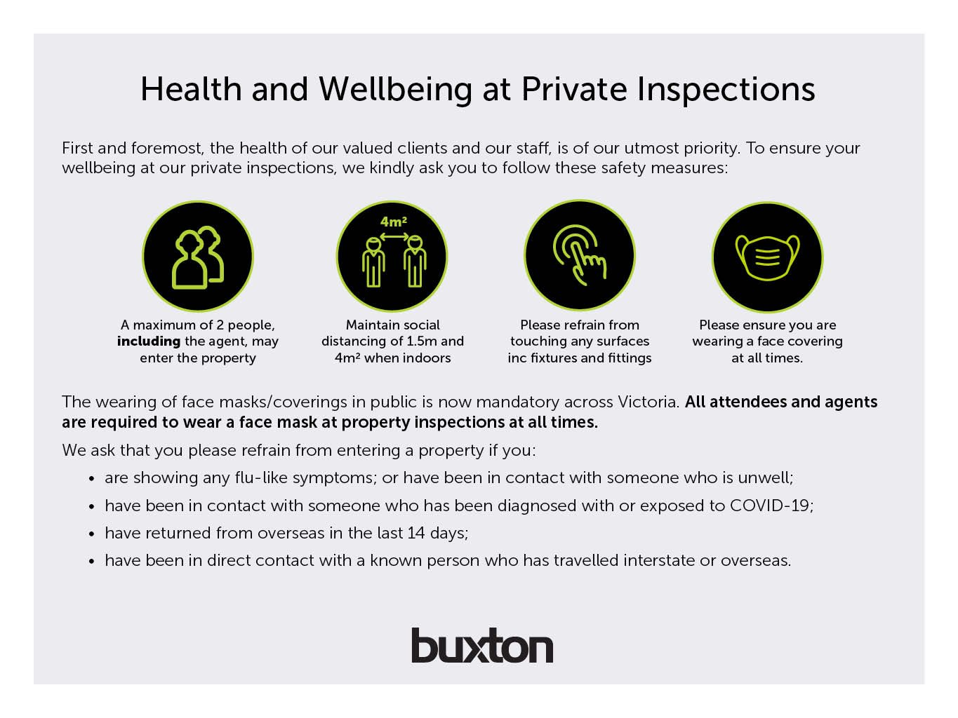 Or go to our website www.buxton.com.au and press the BOOK INSPECTION button to register for a time that suits you.