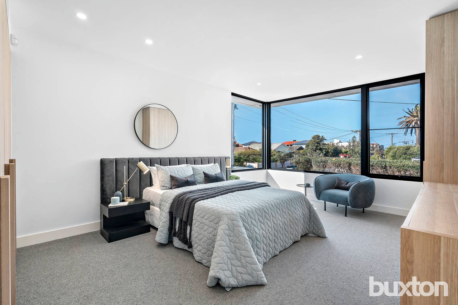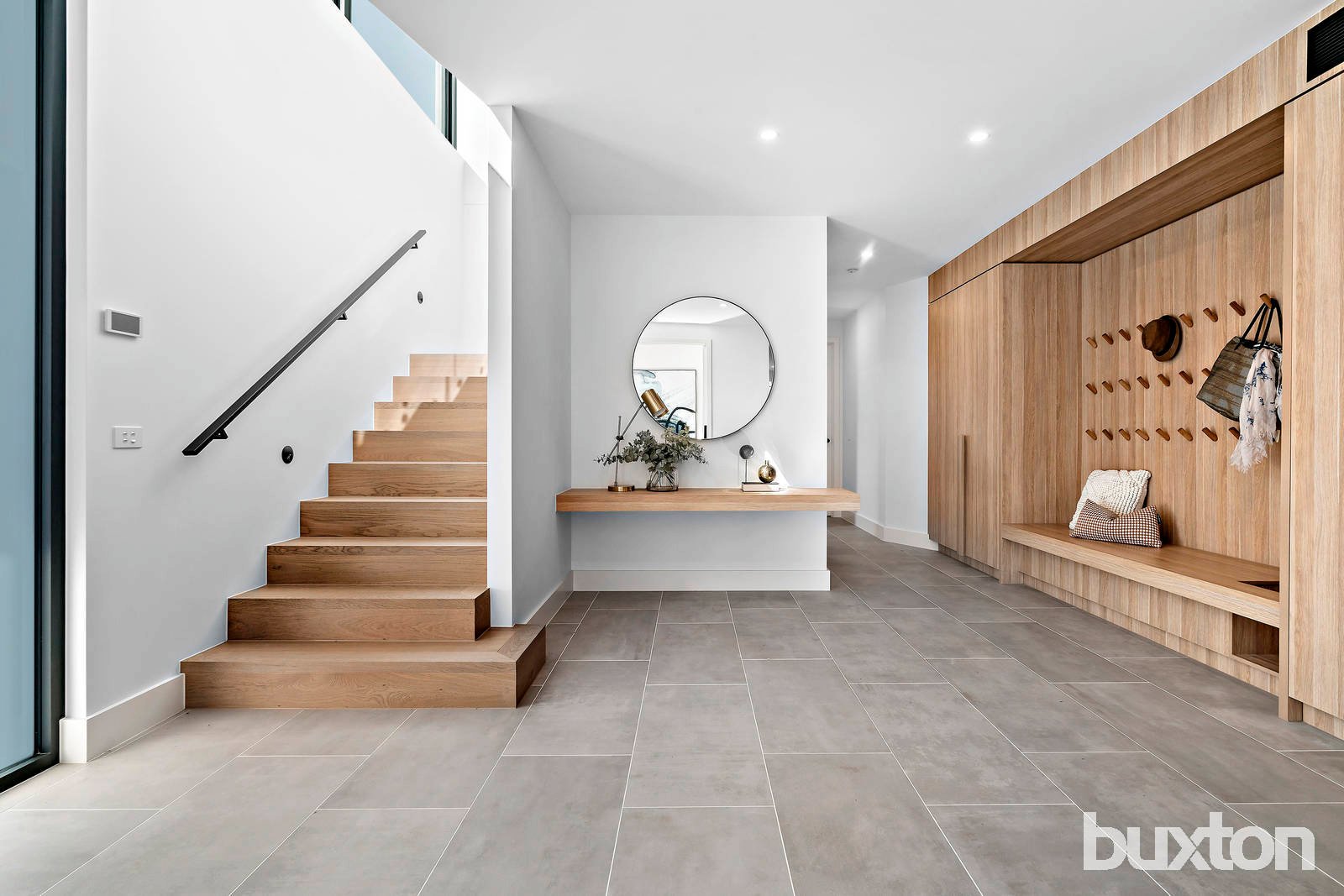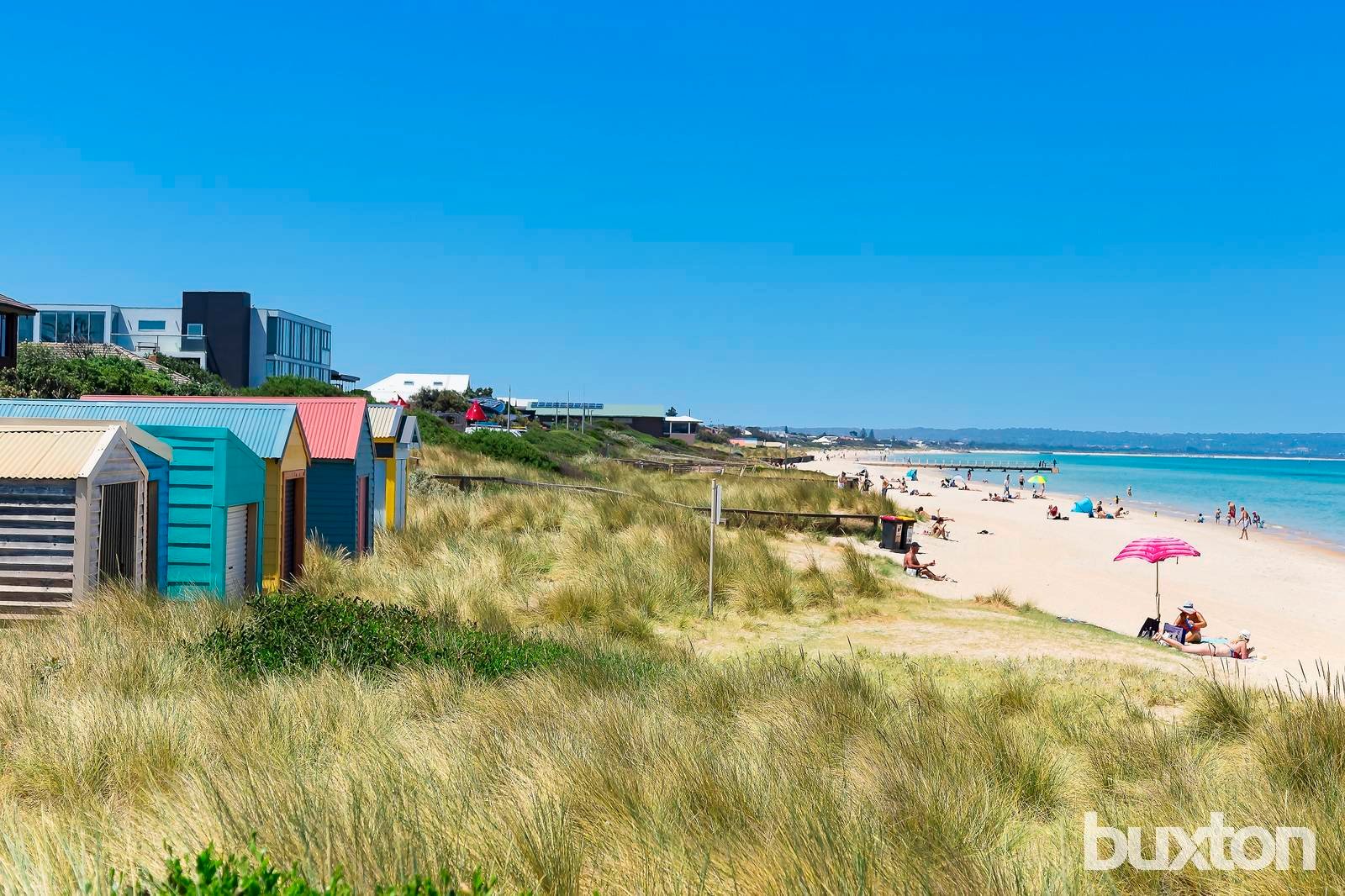 Set right on the Beachfront with the stunning backdrop of Port Phillip Bay. 180 degree views from Mount Martha to the city skyline this architecturally designed 3-bedroom + study beachfront home built by local lifestyle builder Patterson Homes boasting 35 squares of effortless living. Expansive floor to ceiling windows on both levels ensure you’ll never miss a moment of the spectacular uninterrupted vistas across expanses of white sand and crystal blue waters. From the grand entry hall, exquisite custom cabinetry throughout, designer black tap ware, Italian porcelain tiles and engineered French Oak timber floors, to the oversized double auto garage with epoxy showroom grade floors - no expense has been spared on this luxury coastal home. Upstairs, the contemporary open plan living space enjoys vaulted ceilings, an ambient gas log fireplace and covered beachfront balcony; complemented by an integrated gourmet stone kitchen with double oven, sublime ensuited main bedroom (custom cabinetry BIR, dresser and laundry chute) and stunning stone powder room. Downstairs are two bedrooms ( Fitted Cabinetry BIR’s with desks), a stylish family bathroom, study/home office and relaxed family room with wet bar; opening to a polished concrete patio and private courtyard with outdoor shower. Modern luxuries include video intercom, CCTV security and alarm system, ducted vacuum and zoned room by room-by-room r/c heating and refrigerated cooling. Located a short walk to cafes, shops, Victory Park, schools and the train station.