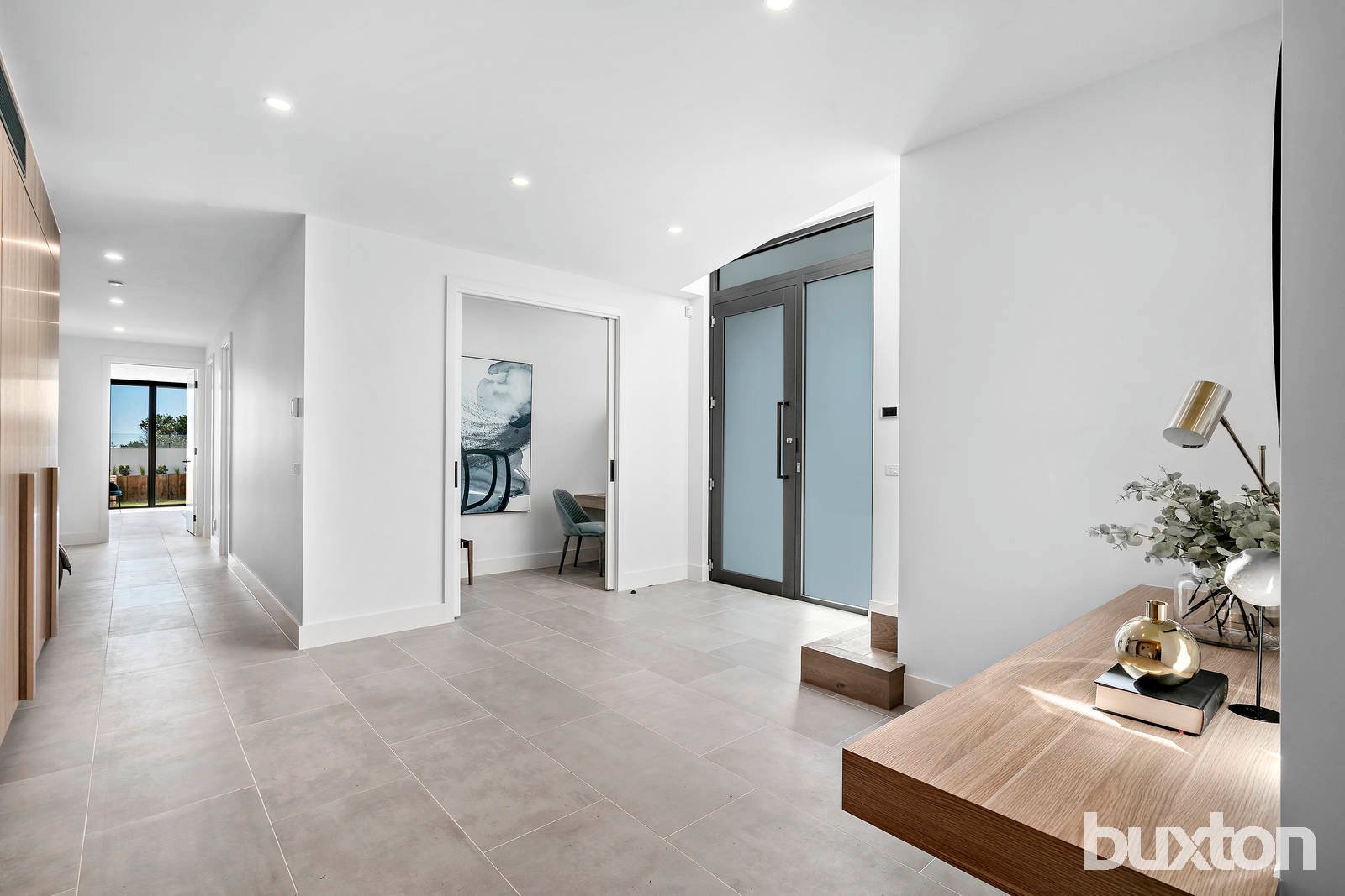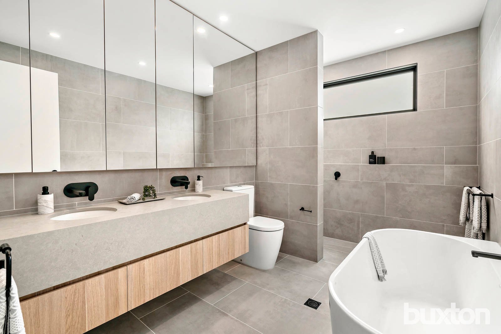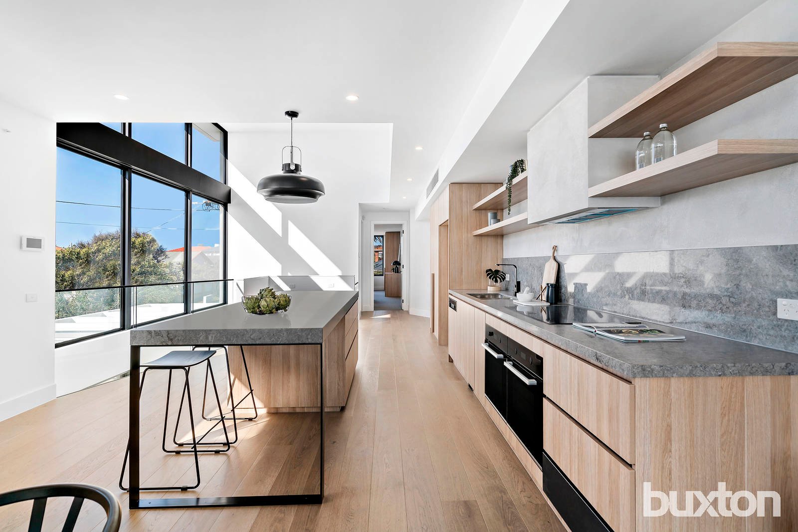 Set right on the Beachfront with the stunning backdrop of Port Phillip Bay. 180 degree views from Mount Martha to the city skyline this architecturally designed 3-bedroom + study beachfront home built by local lifestyle builder Patterson Homes boasting 35 squares of effortless living. Expansive floor to ceiling windows on both levels ensure you’ll never miss a moment of the spectacular uninterrupted vistas across expanses of white sand and crystal blue waters. From the grand entry hall, exquisite custom cabinetry throughout, designer black tap ware, Italian porcelain tiles and engineered French Oak timber floors, to the oversized double auto garage with epoxy showroom grade floors - no expense has been spared on this luxury coastal home. Upstairs, the contemporary open plan living space enjoys vaulted ceilings, an ambient gas log fireplace and covered beachfront balcony; complemented by an integrated gourmet stone kitchen with double oven, sublime ensuited main bedroom (custom cabinetry BIR, dresser and laundry chute) and stunning stone powder room. Downstairs are two bedrooms ( Fitted Cabinetry BIR’s with desks), a stylish family bathroom, study/home office and relaxed family room with wet bar; opening to a polished concrete patio and private courtyard with outdoor shower. Modern luxuries include video intercom, CCTV security and alarm system, ducted vacuum and zoned room by room-by-room r/c heating and refrigerated cooling. Located a short walk to cafes, shops, Victory Park, schools and the train station.