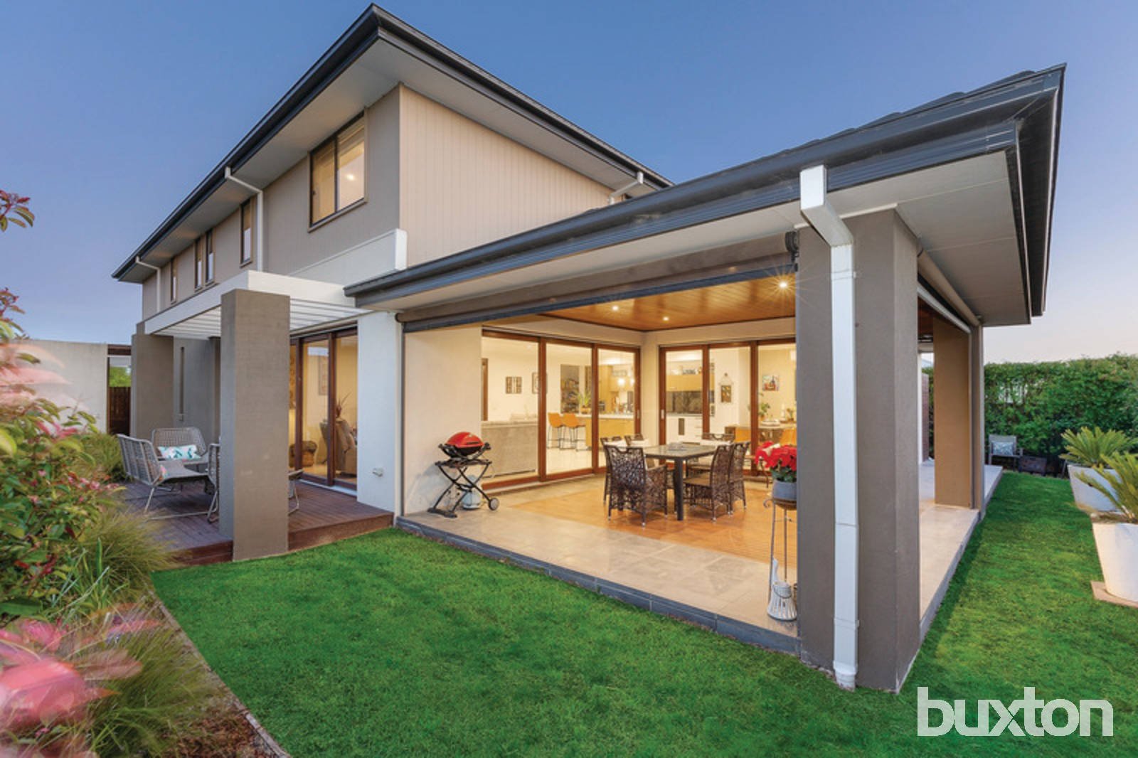 Outside features an amazing alfresco area perfect for entertaining family and friends. With an additional second decked area held next to the living room and side grassed area surrounded by a full hedge and beautiful developed gardens this home is fully established are ready to move into and enjoy. Other features of this very impressive home include double lock up garage with additional office/ small kitchen and powder room area, full security system, ducted gas heating with dual zone controller, evaporative cooling upstairs and two split systems in the open area down stairs and living area upstairs for all year-round comfort.