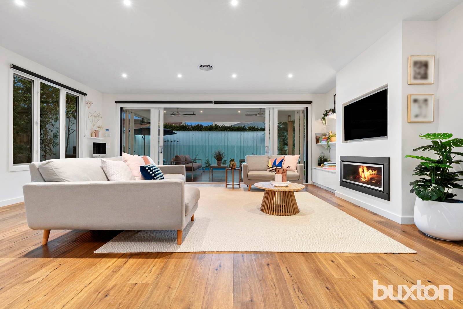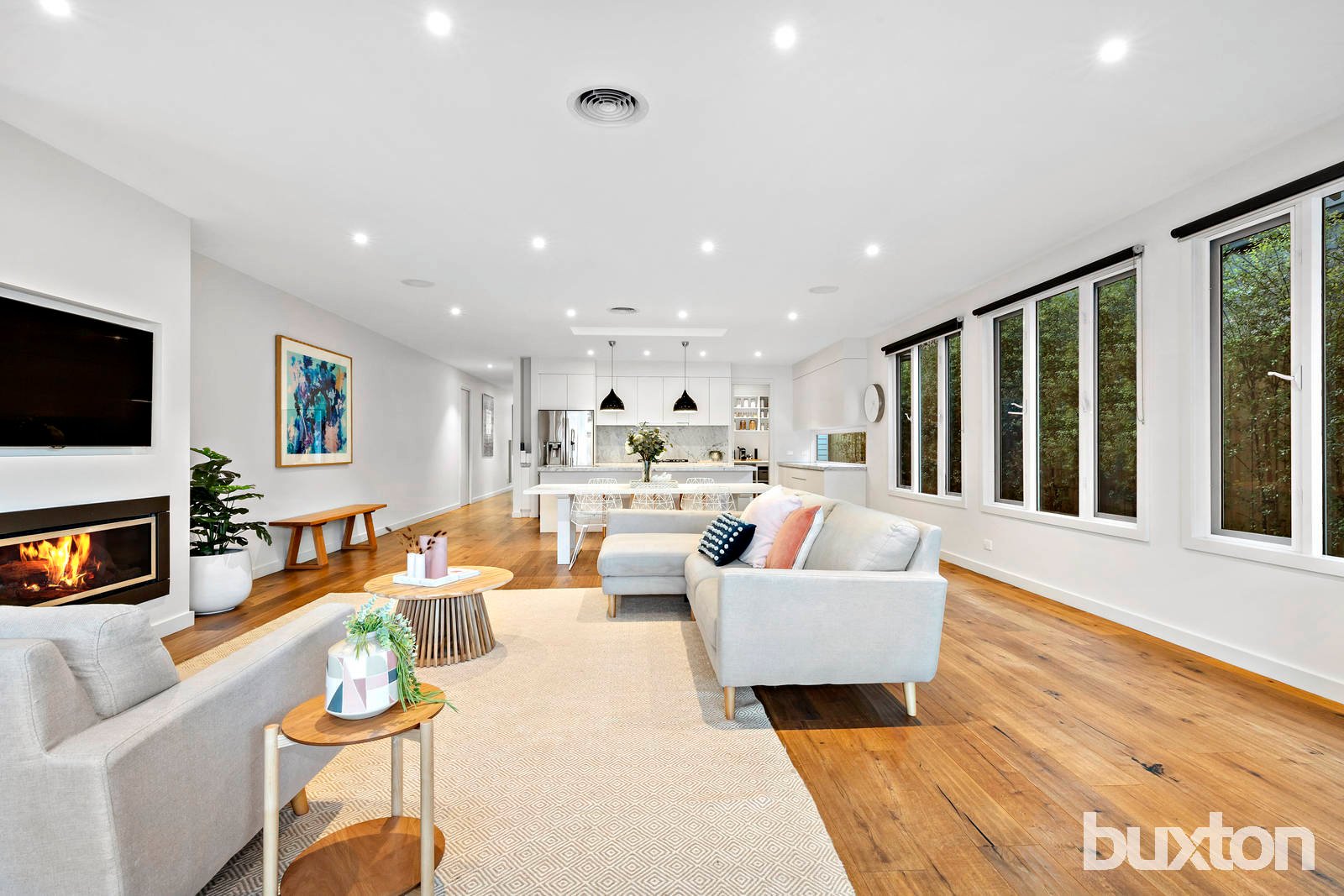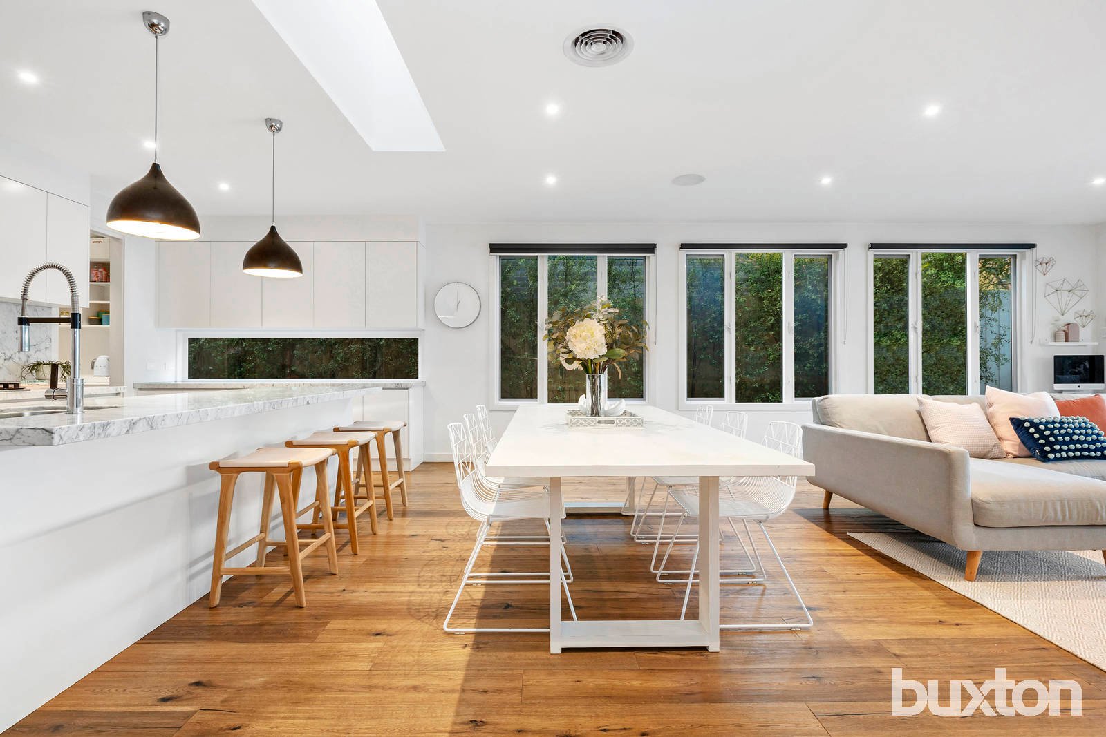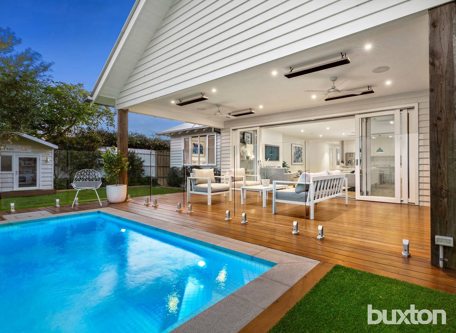 An extra wide entrance hall with European wide oak floors creates an inviting first impression which draws the eye to the rear of the home with its has-to-be-seen-to-be-believed entertaining zone. To the front, the luxurious master bedroom suite with pretty garden views includes a plantation-shuttered bay window with bench seat, hotel-like walk in robe and a spectacular ensuite with double vanity and dual rainhead shower. Continuing down the hallway a separate sitting room with sliding doors for privacy could work equally well as a playroom, teenage retreat or large office however it is the huge open plan kitchen, dining and living room where this home truly takes your breath away. With a wall of windows allowing the northern light to stream through on one side, full width sliding doors opening out to the covered outdoor entertaining and pool area to the rear, a designer feature gas fireplace to the other side and a skylight above this space is simply sensational.
