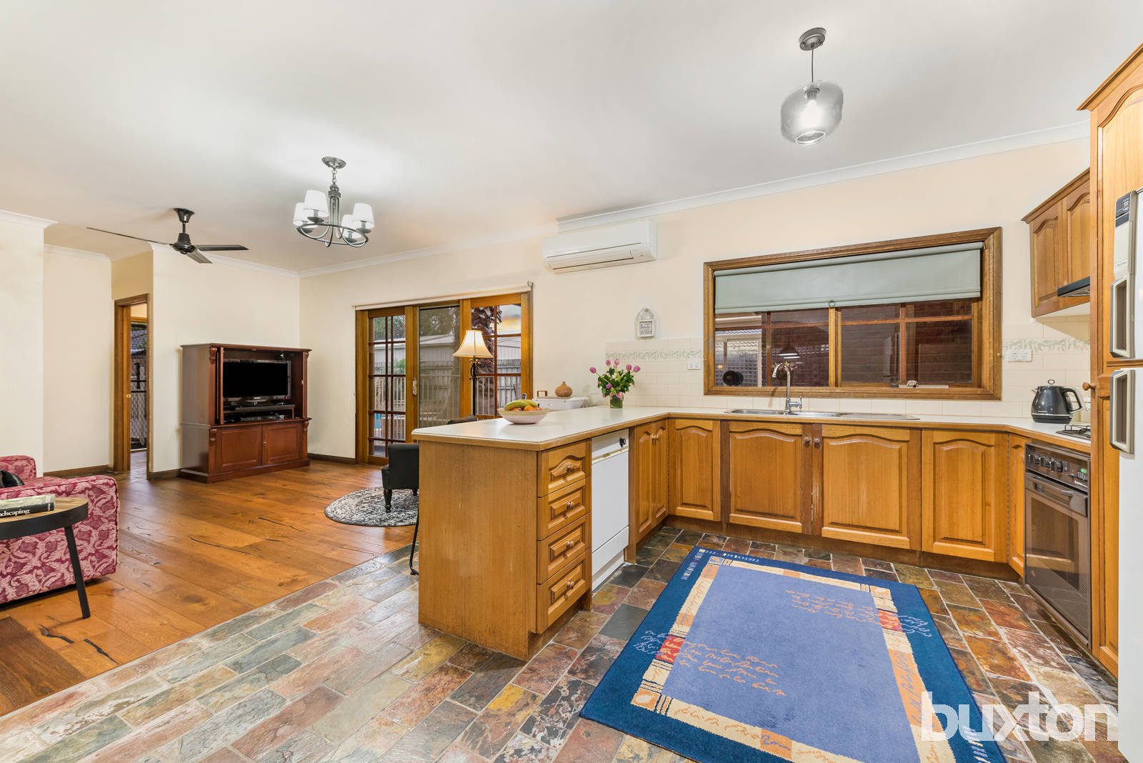 Beautifully detailed with a timeless timber kitchen and elegant ensuite, this custom home takes its cue from the Victorian era with a curvaceous façade featuring a wide bullnose veranda and decorative duo-tone brickwork. With an impressive open-fireplace for the formal lounge, traditional bay-windows for the master and dining areas, and an airy open-plan for the family zone, the home is graciously styled with recycled oak floors, pretty decorative cornices and antique-style lighting. All the contemporary comforts are here too – with ducted heating plus reverse-cycle air-conditioning, ceiling fans and great storage including a master walk-in robe plus plenty of built-ins!
