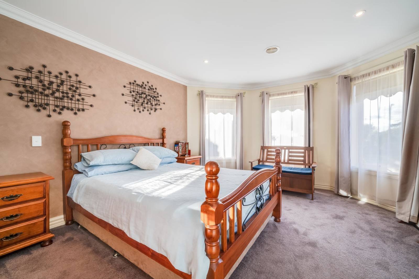 The classic design of this home showcases quality from the onset with beautifully manicured gardens and traditional veranda greeting you with a warm welcome on arrival. Stepping inside, the wide hallway initiates the spacious feeling of the home and grand double doors lead into a luxury master bedroom with stunning bay windows, walk in robes and large ensuite. Also located off the entry is a generous office, perfect for working from home or a quiet place to study.