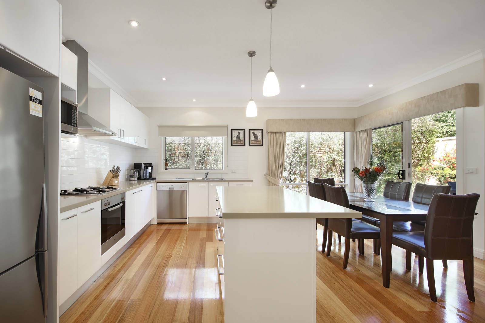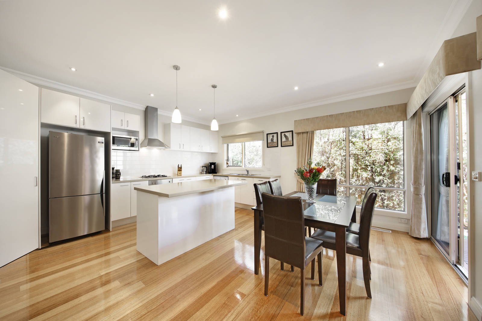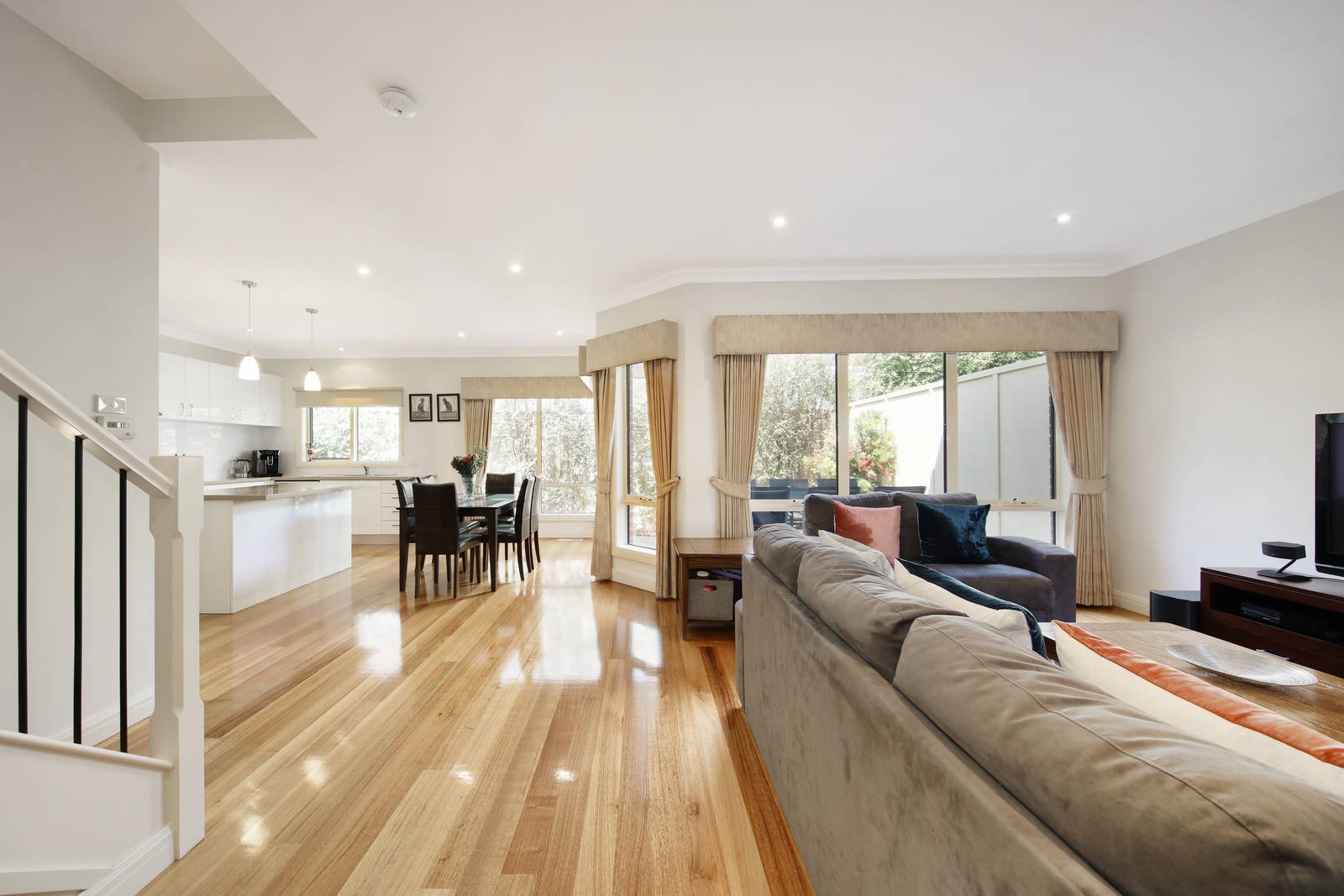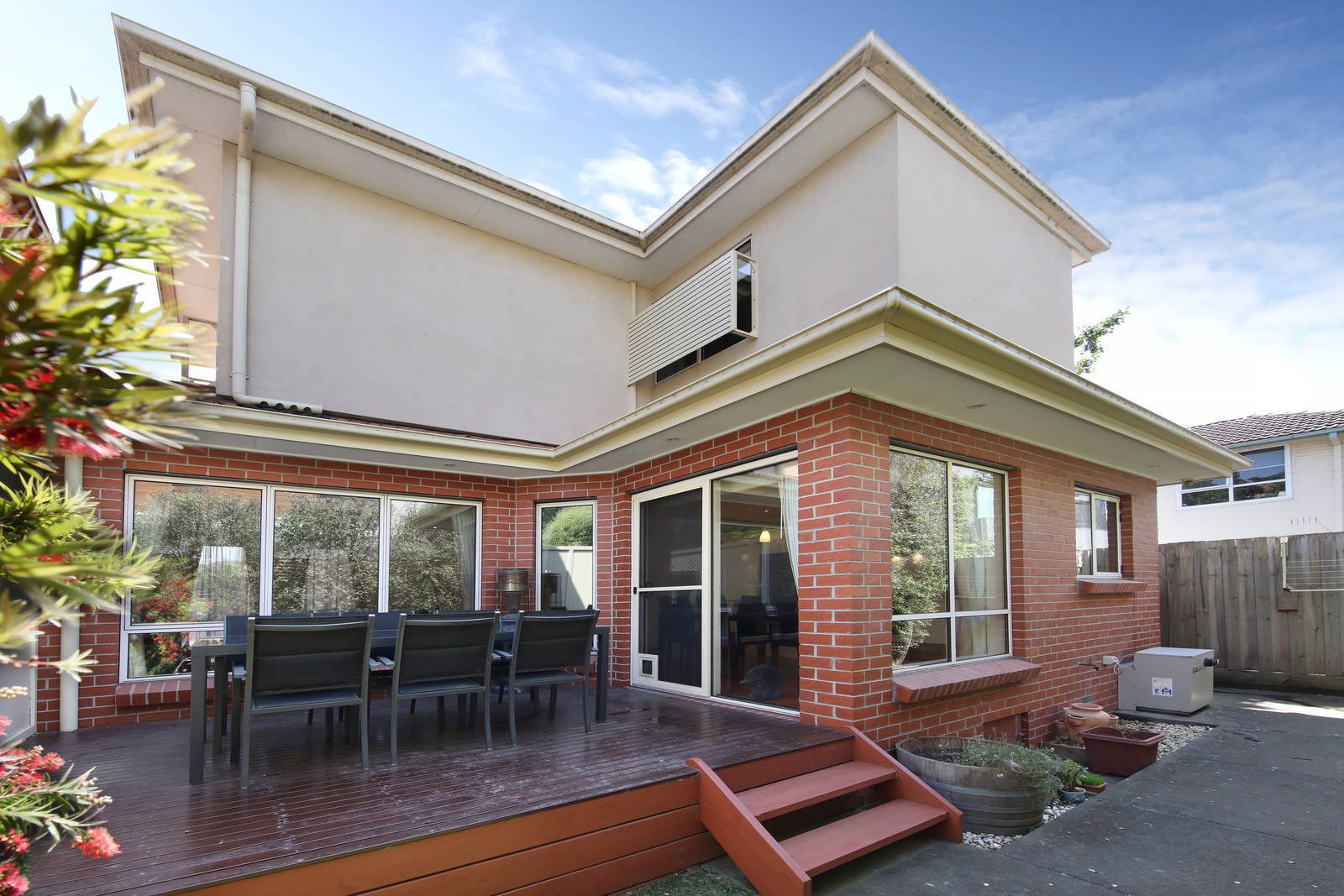 A private lifestyle awaits in this superbly located 3 bedroom double storey townhouse with a practical design & an emphasis on natural light. This stunning rear town residence boasts class with polished boards, high ceilings and thoughtful design. A fabulous space for easy family living & entertaining is presented in this immaculate family home, with generous space indoors for open plan living and dining with luxury stone kitchen opening on to a private deck and hedged courtyard garden; 3 lovely bedrooms (BIRs main with fitted WIR and stylish ensuite), matching bathroom, powder room and a fitted laundry. Superbly maintained, this timeless haven features stone benchtops throughout, ducted heating, evaporative cooling, an alarm, solar boosted hot water, ducted vacuum, home wired network, quality window furnishings, fantastic storage and a double auto garage. Positioned in a boutique of four, this home is only a short stroll to Murrumbeena Village, train and Murrumbeena Park.