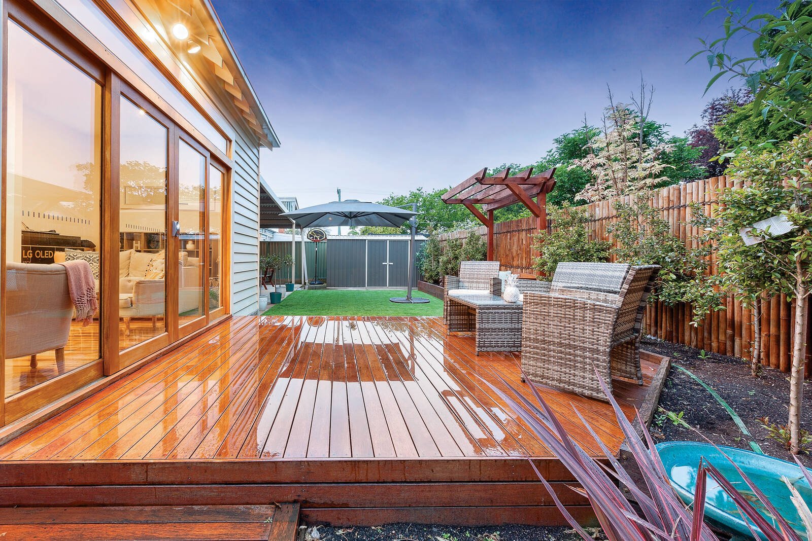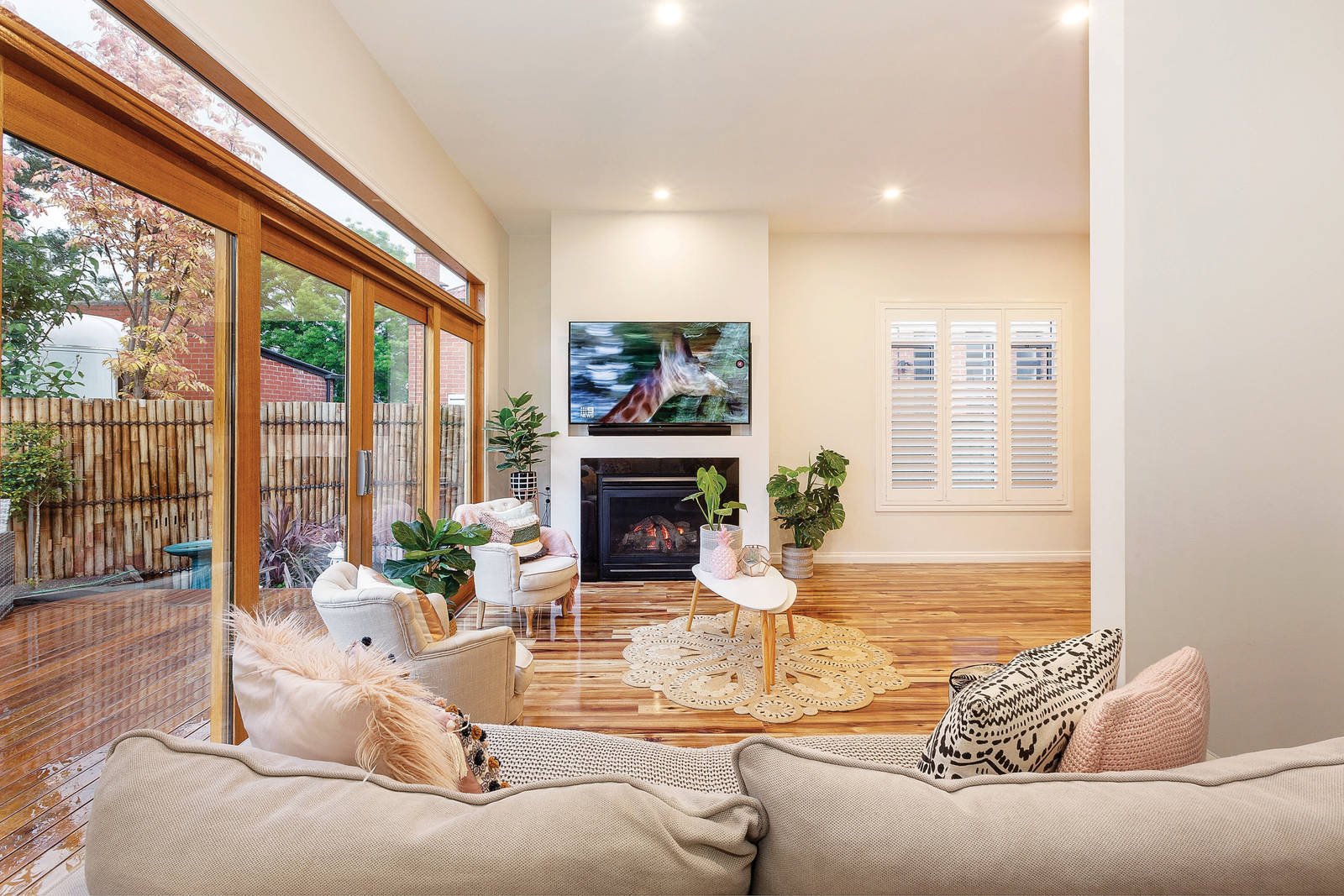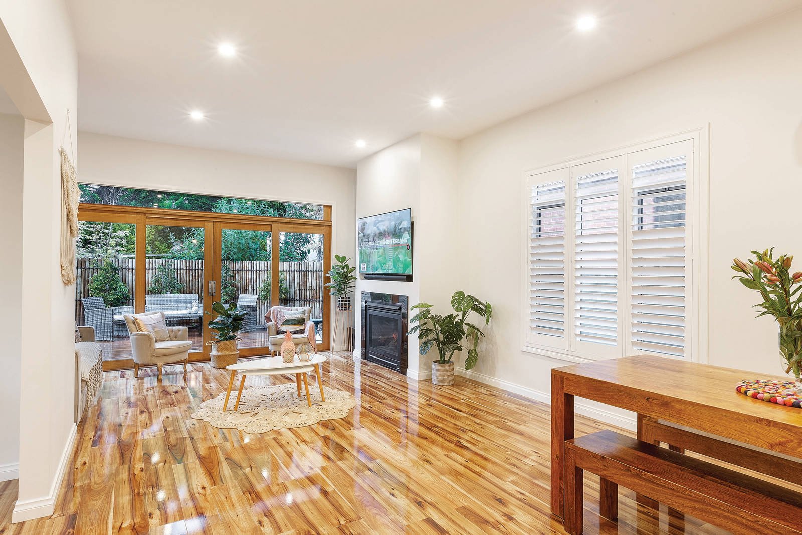The extended rear living zone offers contemporary open plan living. Modern kitchen with stainless steel Asko appliances, polished hardwood floors, gaslog fire, study nook and sliding doors that open directory out onto the entertainer’s deck and meticulously maintained (Low maintenance) backyard.