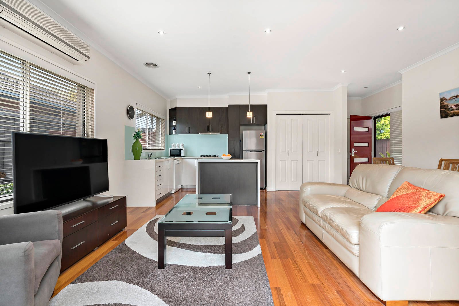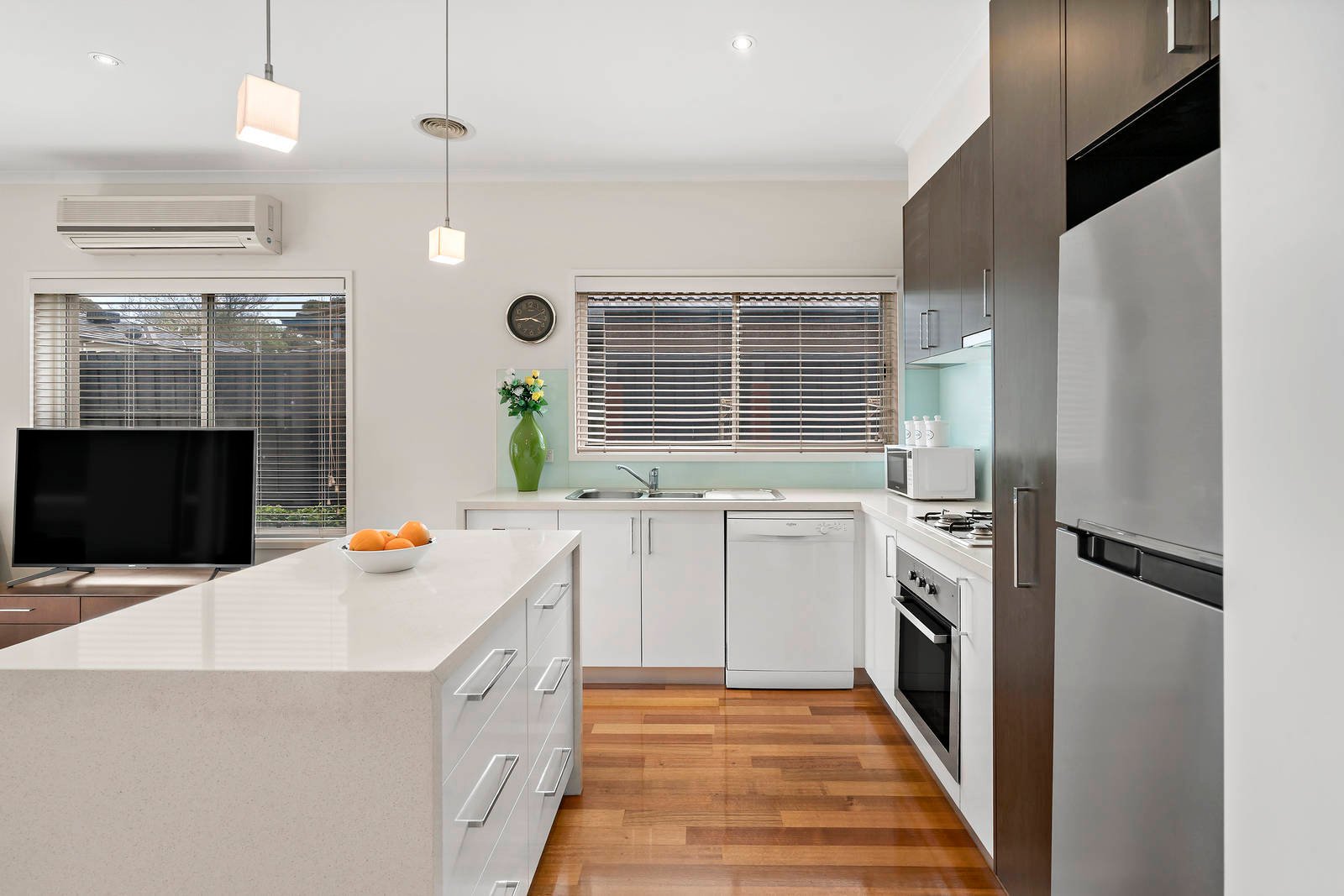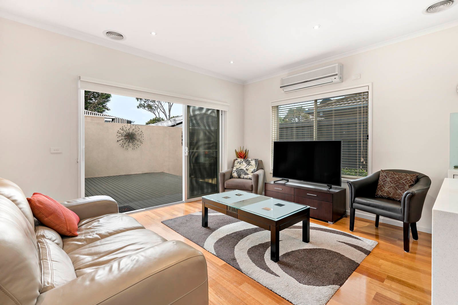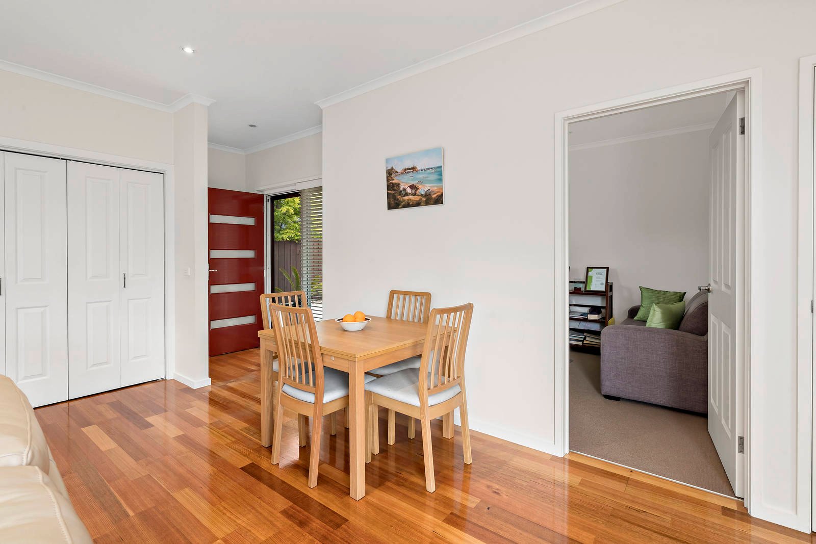 Boasting an outstanding central position and with only two on the block, this modern two bedroom single level rear unit delivers an enviable low-maintenance lifestyle with no body corporate. Beautifully presented and bathed in northern sunshine, relaxed open plan living and dining features stunning Tasmanian Oak floors and stacking glass doors leading to a large alfresco deck and wrap around courtyard garden - the ideal setting to entertain guests. The accompanying kitchen will impress with its sleek waterfall stone benchtops, glass splashback, gas cooking and plenty of storage. Both carpeted bedrooms enjoy mirrored built-in robes, serviced by a sparkling bathroom boasting a stone vanity and luxurious double shower. Adding further appeal is ducted heating, split system cooling, a discreet Euro laundry, security doors and oversized single auto garage with internal entry and courtyard access. Conveniently located steps to the bus, 250m approx. IGA, takeaway, medical centre and the bakery for your morning coffee plus, schools, Bicentennial Park, Chelsea Village, the train and beach bliss are all in close proximity.
