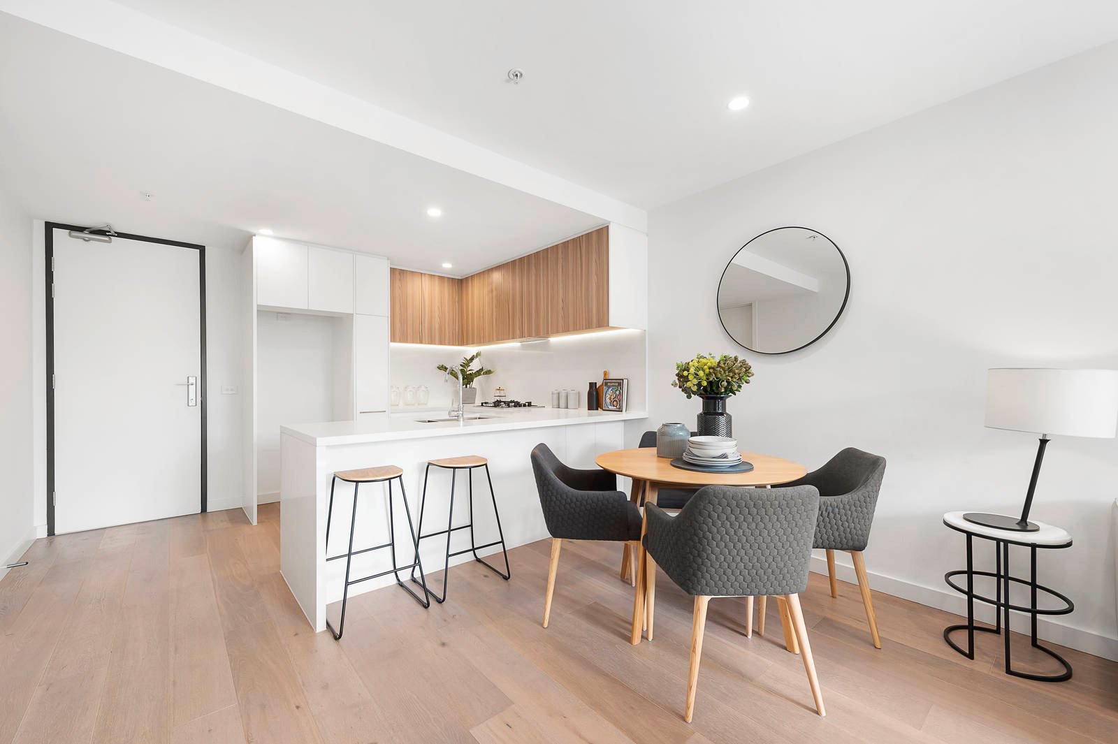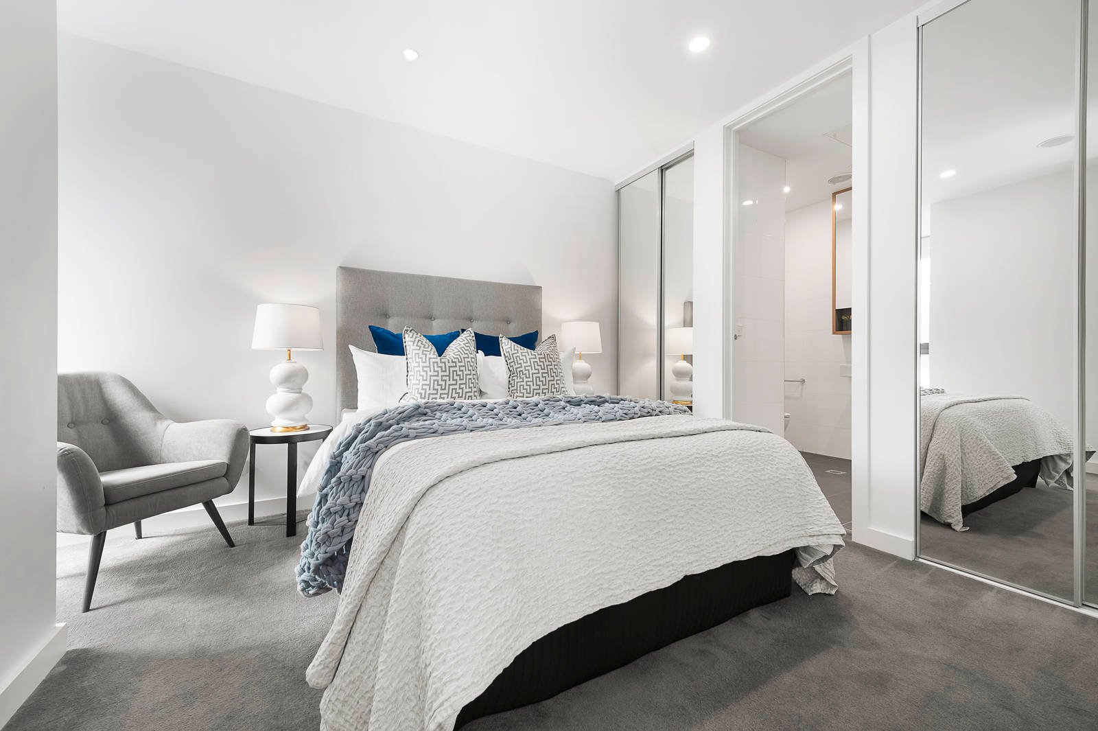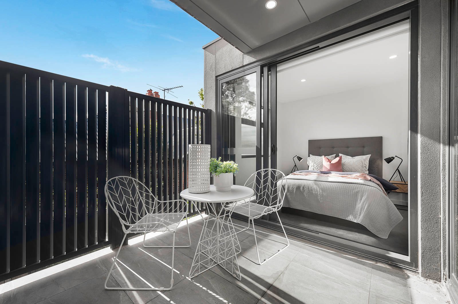 Instantly impressive for its contemporary appointments and sparkling interiors of generous proportions, this 2-bedroom 2-bathroom apartment points to supreme home buyer or investor satisfaction. Preceded by versatile open-plan living and dining areas, a large sheltered balcony is the perfect setting for alfresco enjoyment, with the stone surfaces in the Bosch-equipped kitchen (integrated dishwasher) illuminated by feature lighting. Both carpeted bedrooms have mirrored built-in robes – one with balcony access and the master leading to a private ensuite. Located for lifestyle ease just a short stroll to Glen Huntly Park, Glenhuntly Train Station and local cuisine, it includes a secure car space, private storage room, reverse-cycle heating/cooling, a/v intercom, Euro laundry, dual layer roller blinds and lift access.
