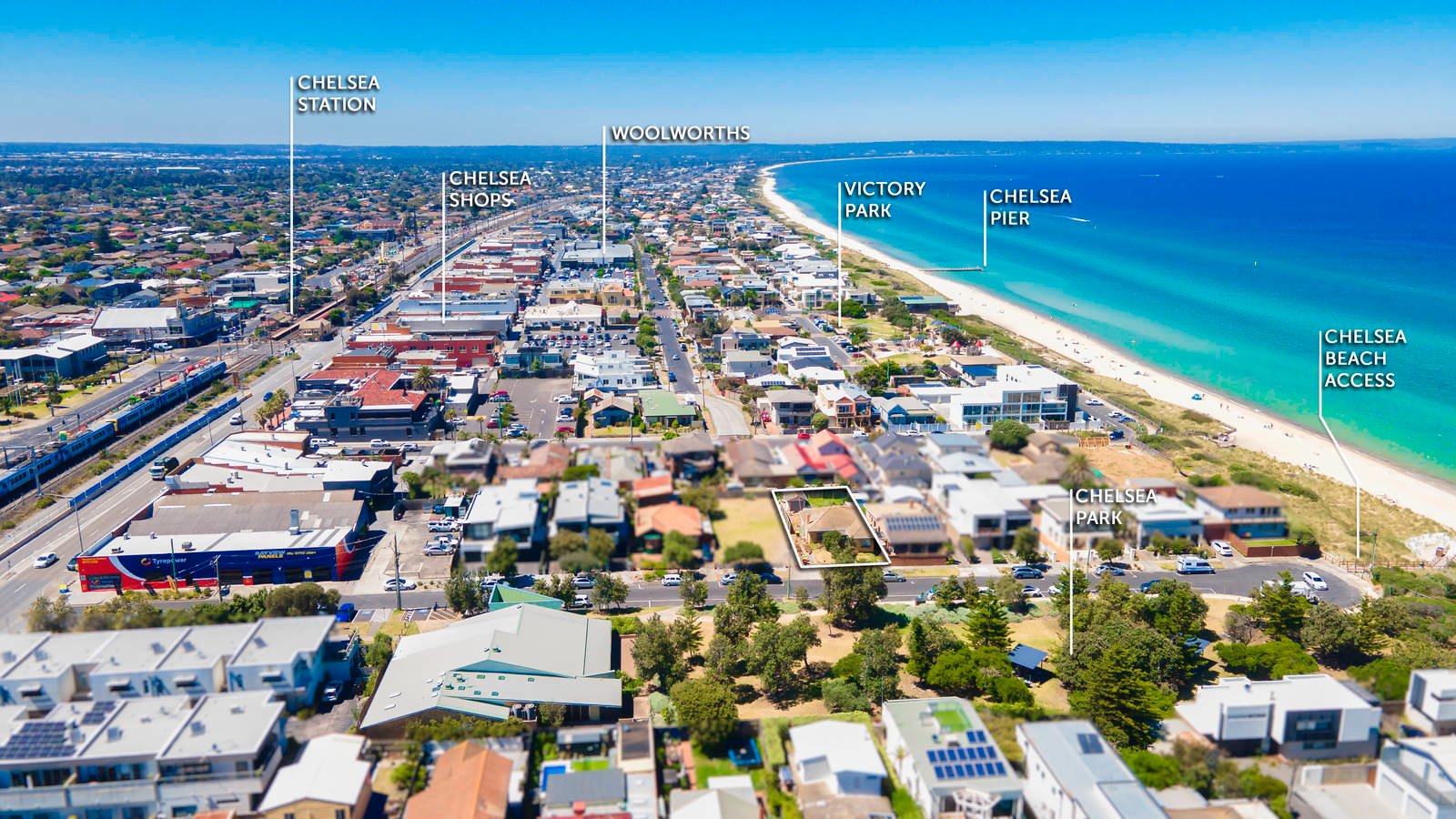 Situated in a prime beachside street in the heart of Chelsea, this blue-chip address offers a luxury lifestyle where there’s no compromise on location. Set directly opposite Chelsea Park and just five doors from one of the best beaches along the bay, you’ll have your feet on the sand for endless days of summer fun within seconds. While the existing home has had its day, the 460m2 (approx.) allotment offers the perfect opportunity to create your own vision of coastal living – build your dream family home, or look to the neighbours and explore the potential for a dual occupancy development (STCA.) Exceptionally positioned to enjoy the very best that Chelsea offers; footsteps to iconic beach boxes and the Chelsea Yacht Club, a vibrant café culture and shopping within approx. 270m, Chelsea Railway Station under revitalisation plus, excellent schools, Chelsea Pier and Victory Park all within an easy stroll - this unbeatable location is a lifestyle winner.