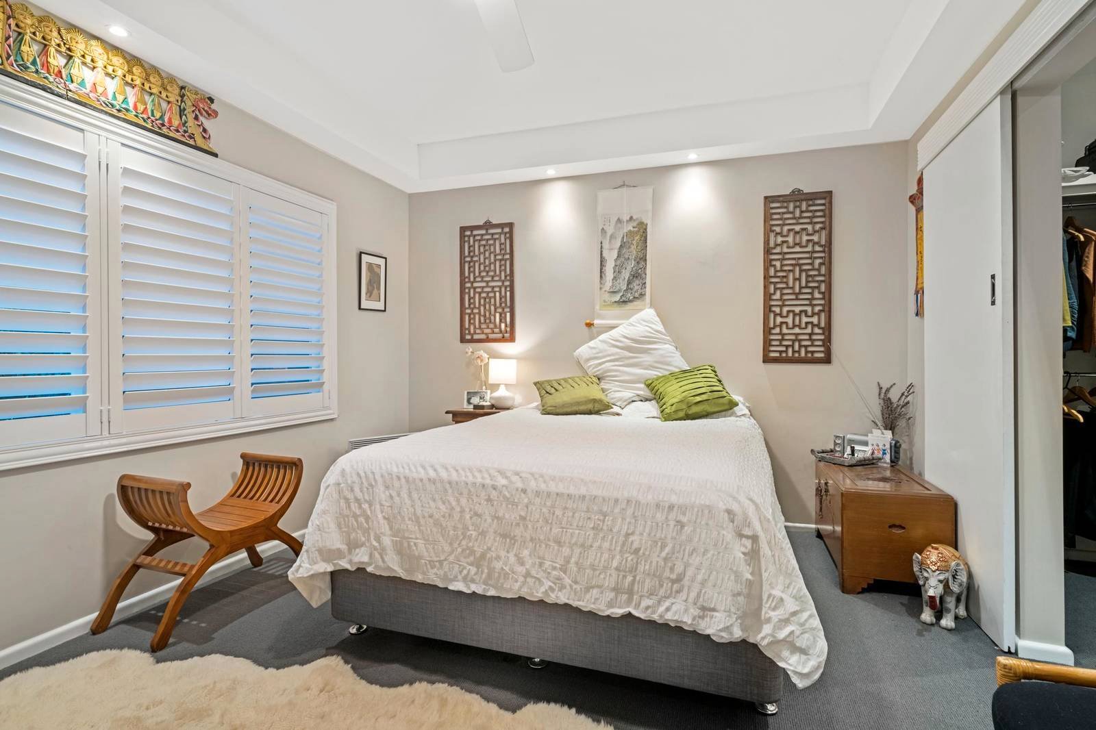 Stunning plantation shutters generate a light and spacious ambience, while the neutral palette, authentic timber flooring and stone fire place, give a cosy and homely feel.