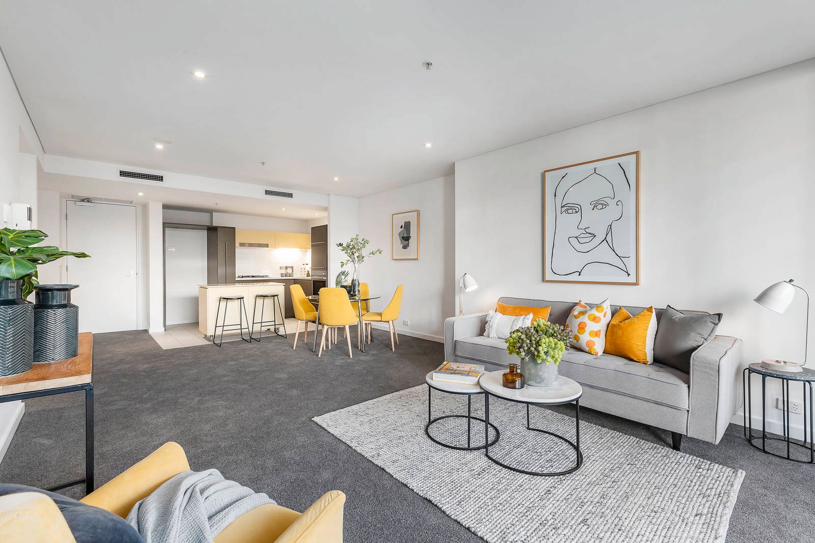 Enjoying a remarkably tranquil setting within SY21, South Yarra’s premier resort-style complex, this oversized 1-bedroom apartment allows for an unbeatable inner-city lifestyle. Preceded by a kitchen featuring Smeg gas appliances, an integrated drawer dishwasher and a stone island bench, wonderfully wide open-plan living/dining areas flow out to a...