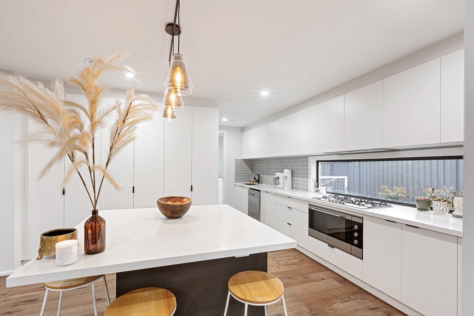 This beautifully designed home has a luxurious feel as soon as you enter via the wide front entrance door. A lot of care and attention to detail has gone into everything within the house, including beautiful Tasmanian oak real timber flooring, top of the range carpet and high ceilings with bulkhead detail in main living and kitchen.