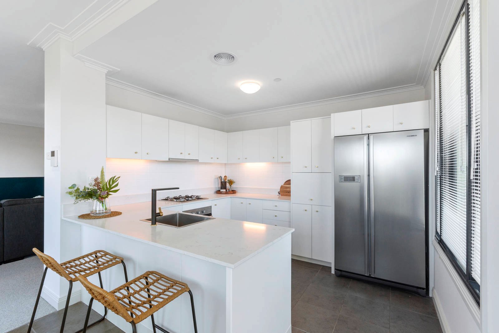 Moving upstairs, the master suite is luxurious in size and provides a peaceful retreat with elevated views, walk in robe and a sizeable ensuite with corner spa. Bedroom two is equipped with built-in robes and bedroom three offers a walk-in robe and private balcony. A central bathroom services bedrooms two and three and a laundry with storage room caters for the practical provisions of apartment living and