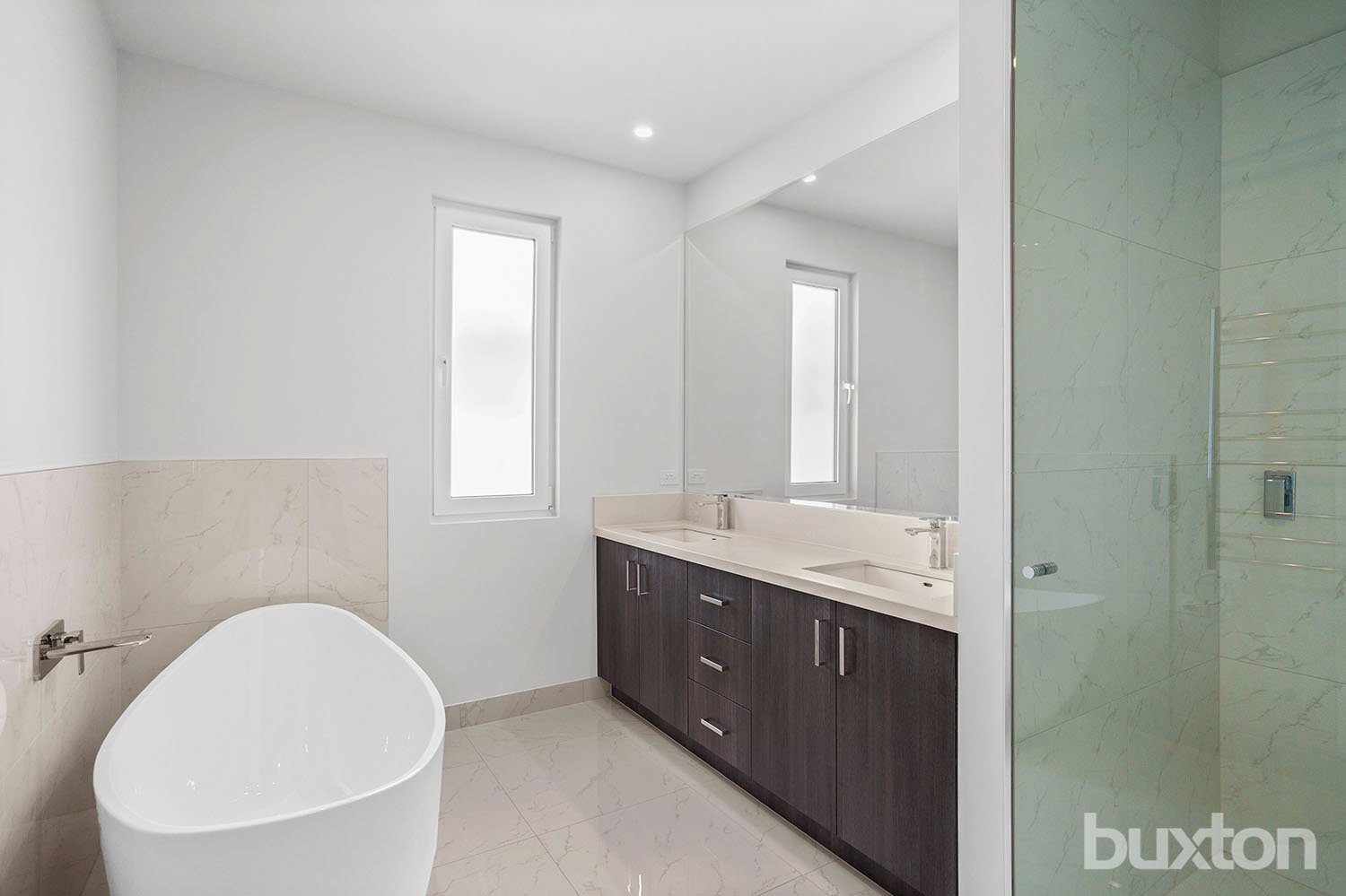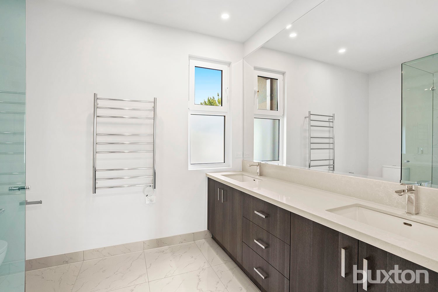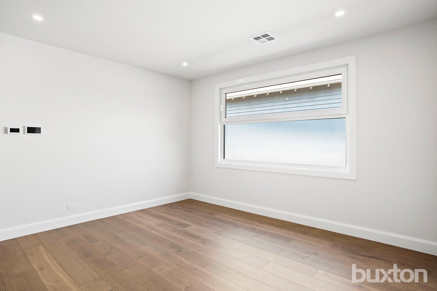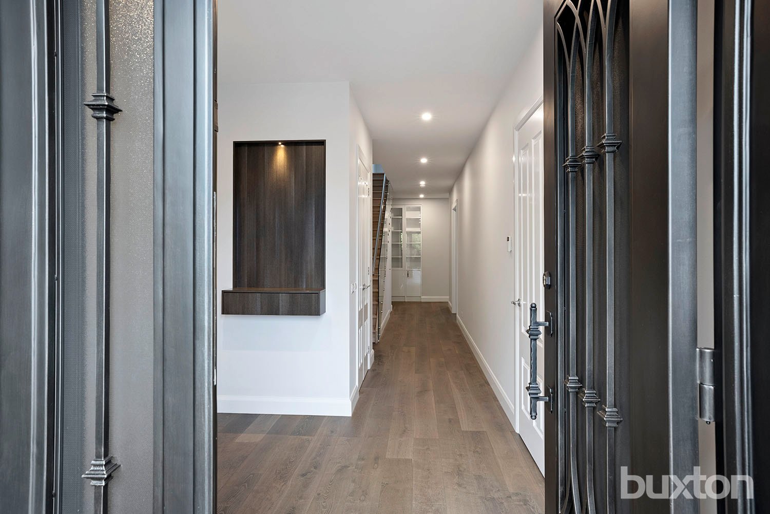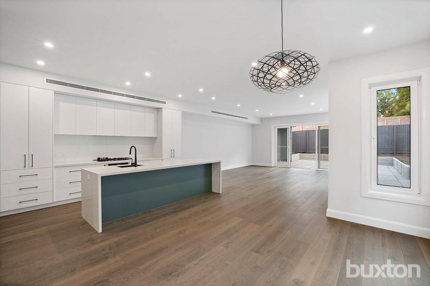Ground level: grand separate entry leading into mammoth & light filled open plan living with stunning gourmet kitchen with butler’s pantry, quality appliances, 900 wide Neff gas cooker top, integrated dishwasher, breakfast bar, stone bench tops, separate formal living zone or 4th bedroom with adjoining luxury bathroom, large study area with built in cabinetry & separate full fitted laundry. First level: large open plan 2nd living zone, master bedroom with walk in dressing room, luxury en suite with double basins, heated towel rails, generously sized 2nd & 3rd bedrooms both with fully fitted built in robes & deluxe central bathroom with double basin, separate shower, deep bath & WC. Features: central heating & cooling throughout, double remote garage with internal access, ample storage cupboards, alarm, video intercom, & much much more! This state-of-the-art residence is a rare find & not to be missed! Conveniently located minutes’ walk to Glenhuntly Road shops, cafes, trams, and strolling distance to the train, cinemas, schools and parklands. NB: landscaping yet to be completed.