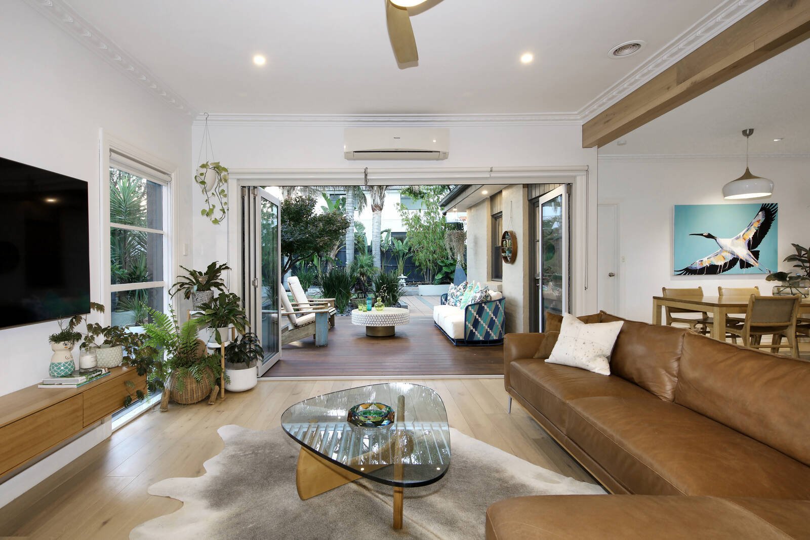 Brilliant natural light, decorative cornices and plantation shutters add a timeless feel to free-flowing spaces for seamless indoor-outdoor...